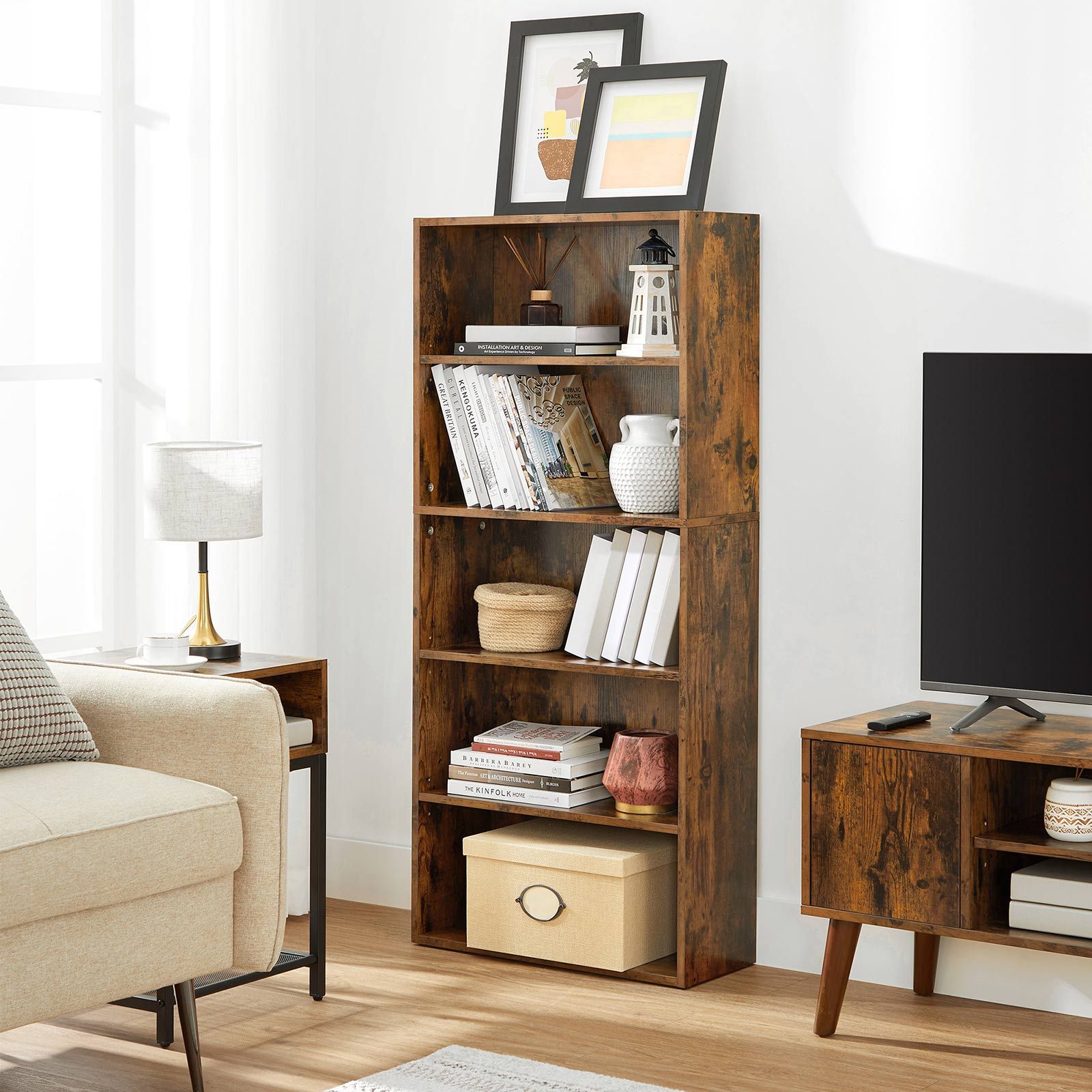 Organize and display your books and decor with the VASAGLE 5-Tier Bookcase. This rustic brown shelving unit features open compartments and adjustable shelves, offering versatile storage for your living room, home office, or bedroom. Its stylish design complements any space, providing both functionality and aesthetic appeal.