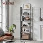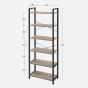Bookcase - NOVVAS Industrial 6 Tier with Adjustable Shelves Black Steel - Heather Greige