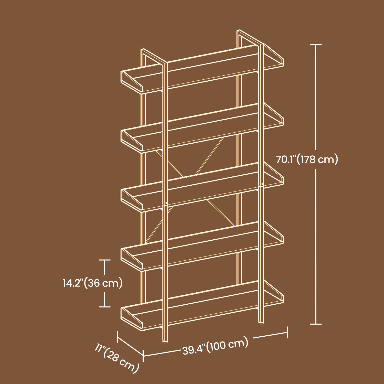 Bookcase - VERRA 5 Tier Shelving Unit Spacious Storage Shelve - Black