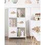 This capacious bookcase is the perfect storage solution for any kids' room. The bookcase is crafted from durable, yet easy-to-maintain MDF material, and supported by sturdy pine wood legs. Additionally, it features an adorable cloud-shaped motif that adds charm and cosy atmosphere to the space. Thanks to its neutral white colour, the bookcase looks great in any interior style.