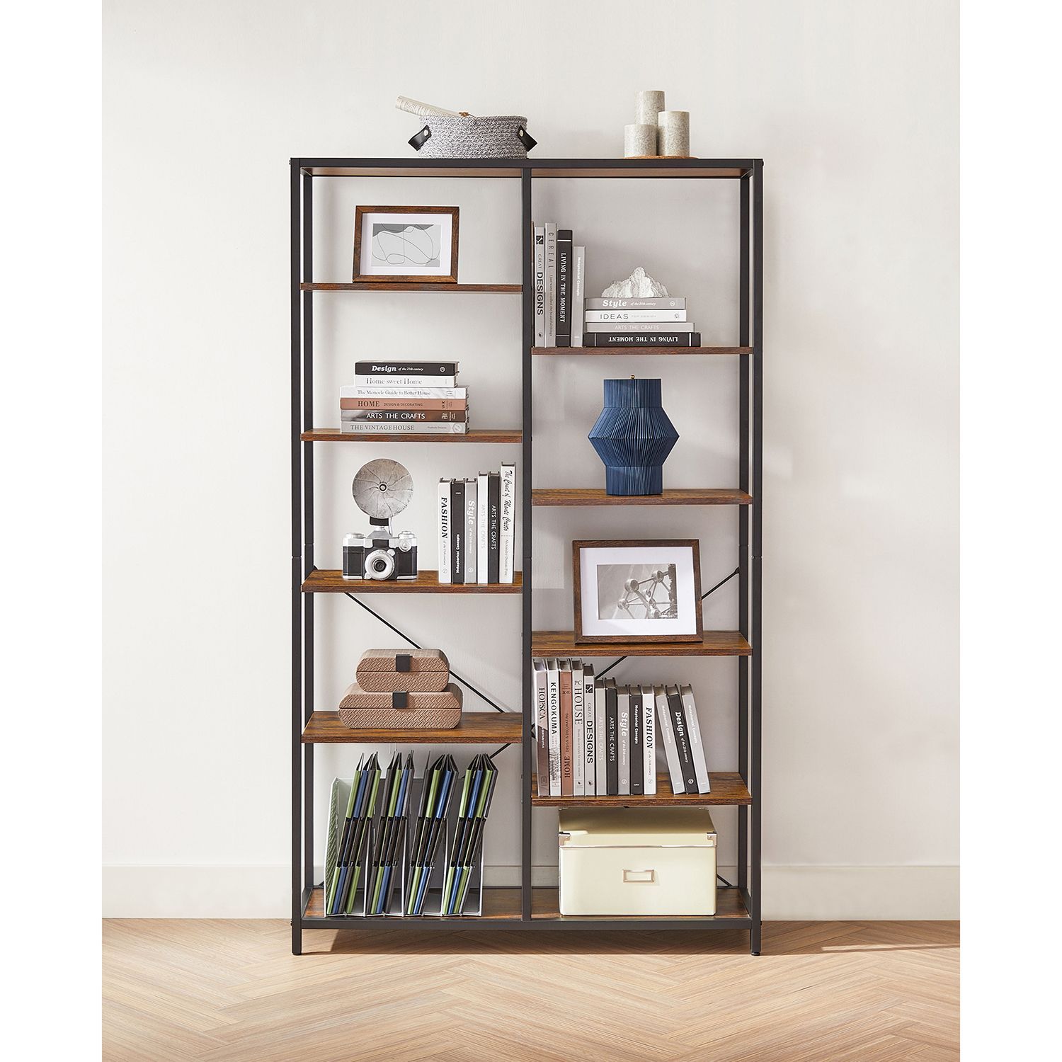 Bookshelf - ASTON 5-Storey Standing Display Rack Rustic Brown - Rustic Brown