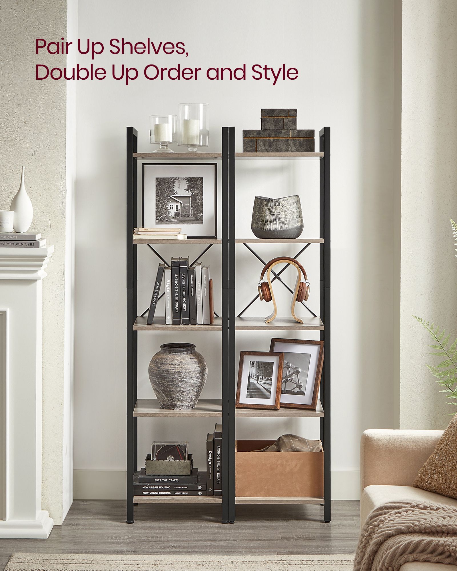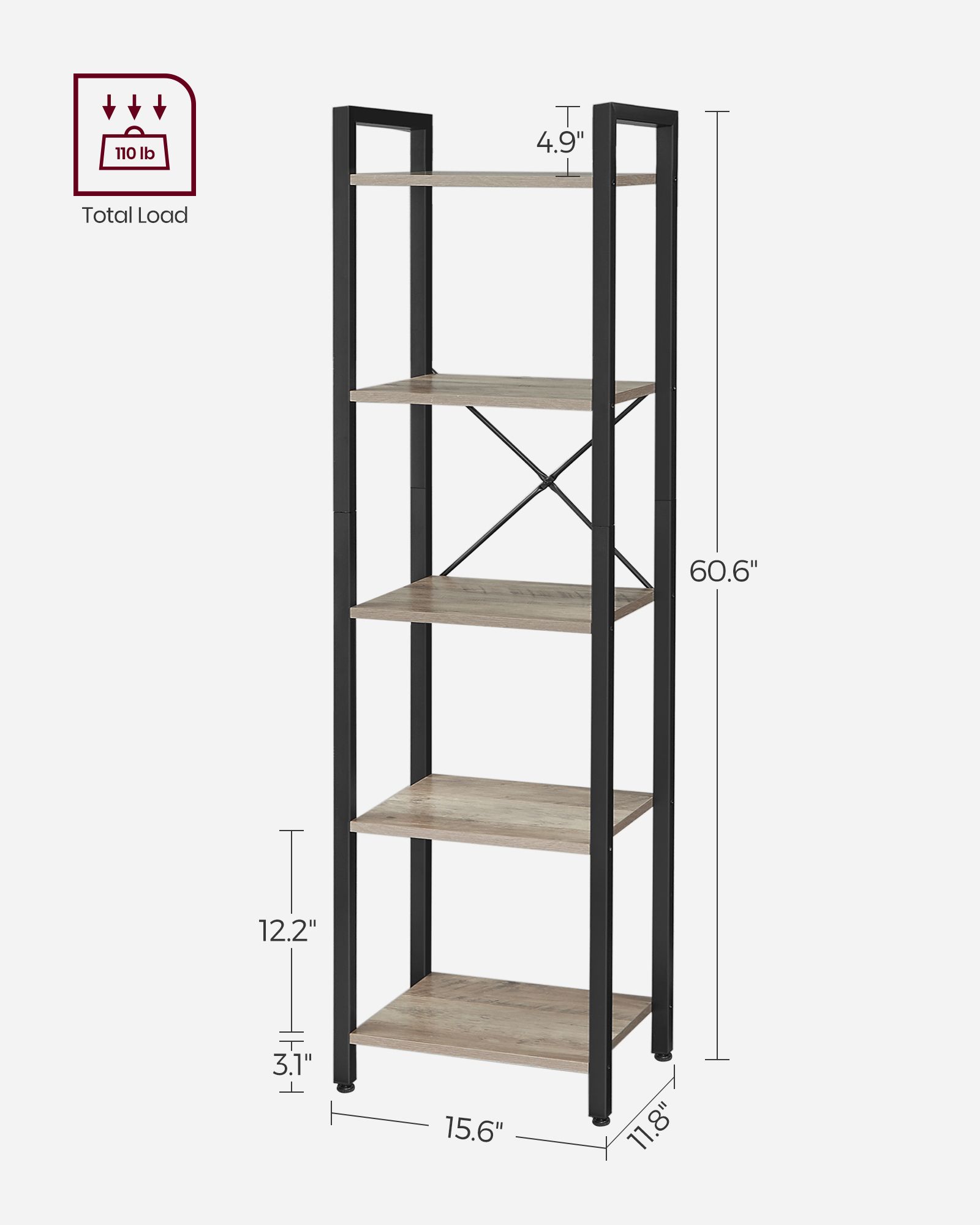 Organize your space with this stylish 5-tier VASAGLE bookshelf. Its industrial design, featuring a rustic brown and black steel frame, complements any living room, office, or hallway. Measuring 30 x 39.6 x 154 cm, this standing display storage rack offers ample room for books, decor, and more, blending functionality with a chic aesthetic.