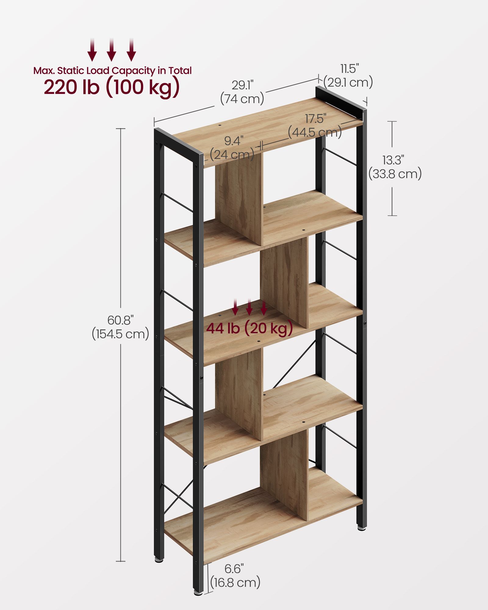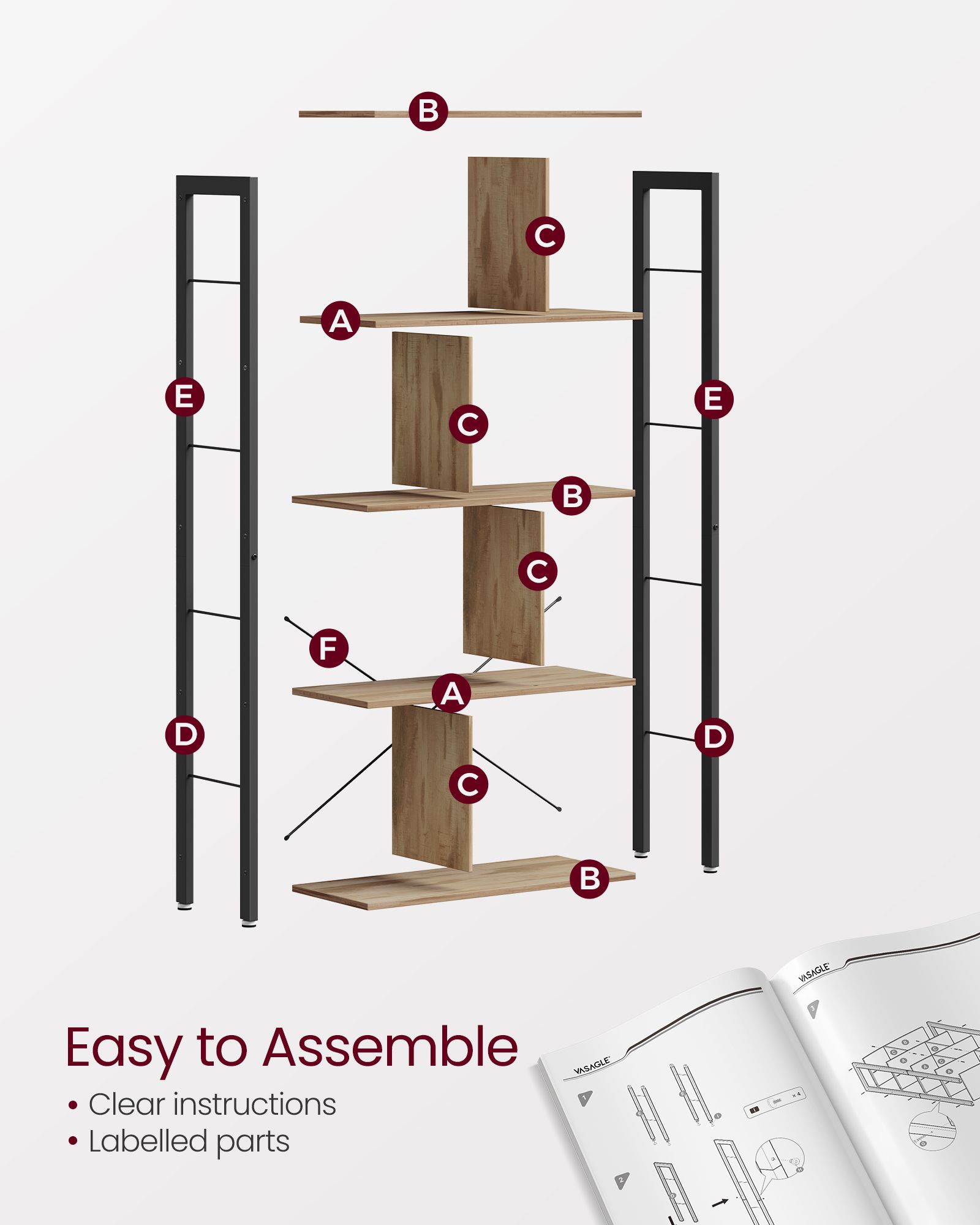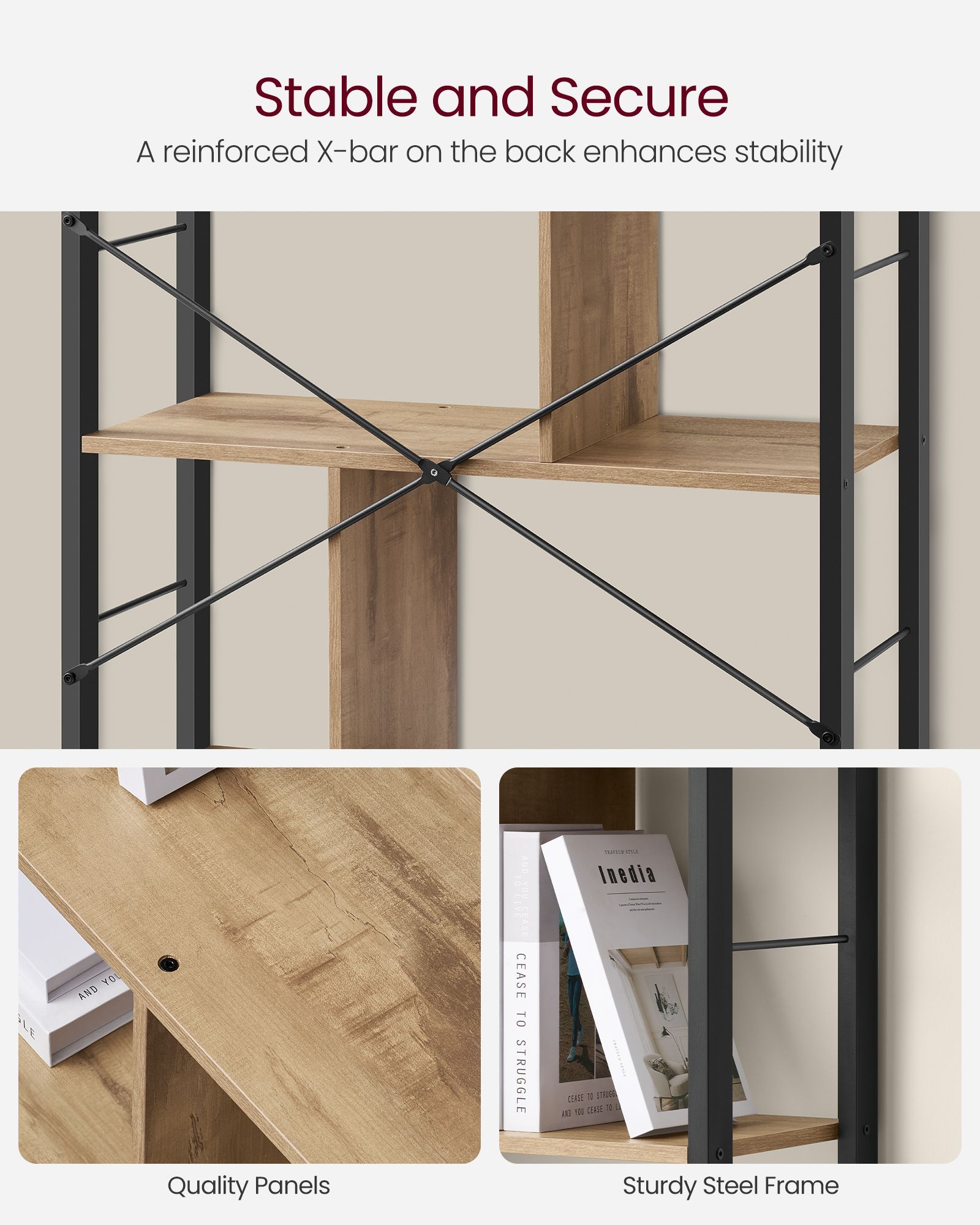 Bookshelf - LUMLIA 5 Tier Standing Shelf Camel Brown and Black - Camel Brown