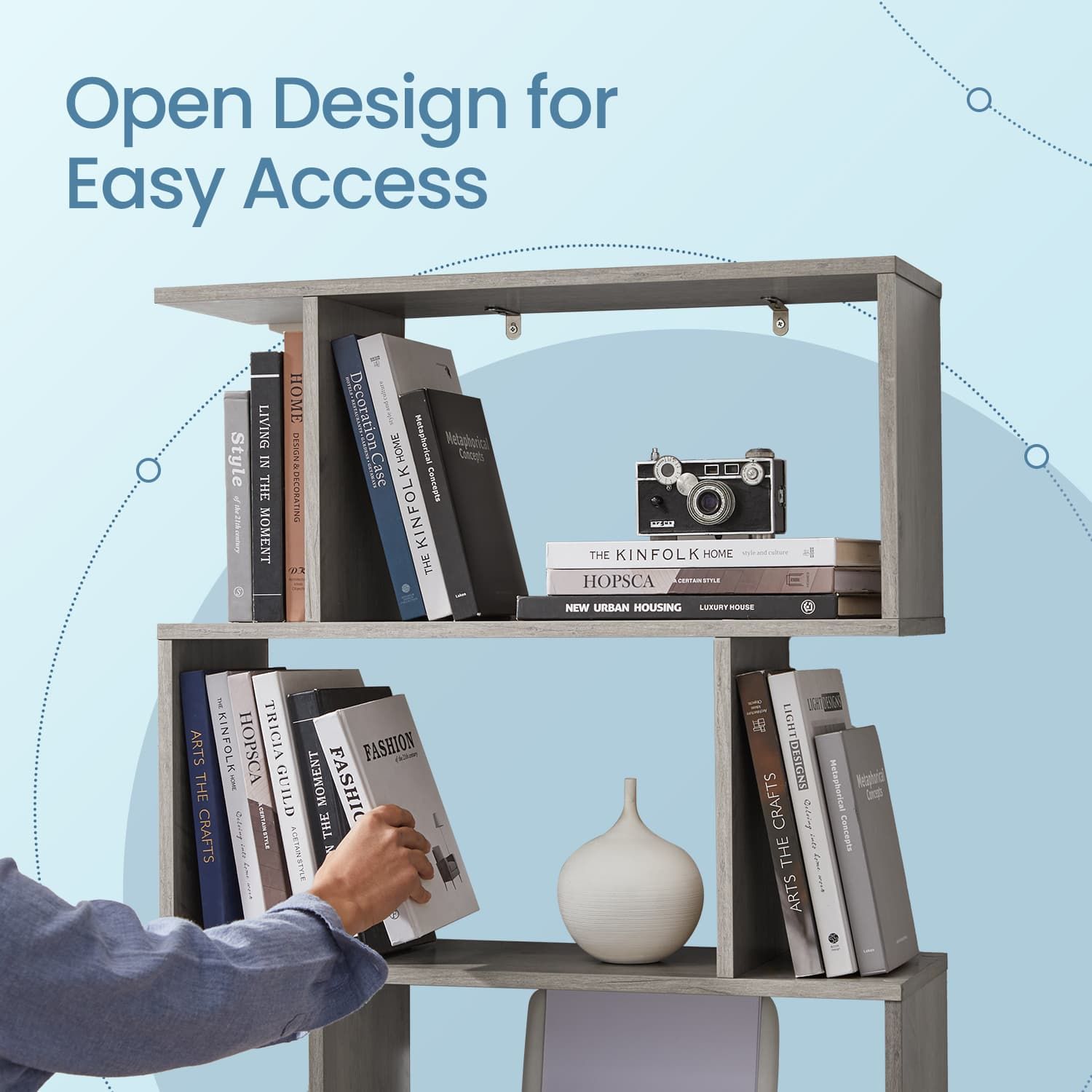Bookshelf - VERRA 6 Tier Bookcase Room Divider - Light Grey