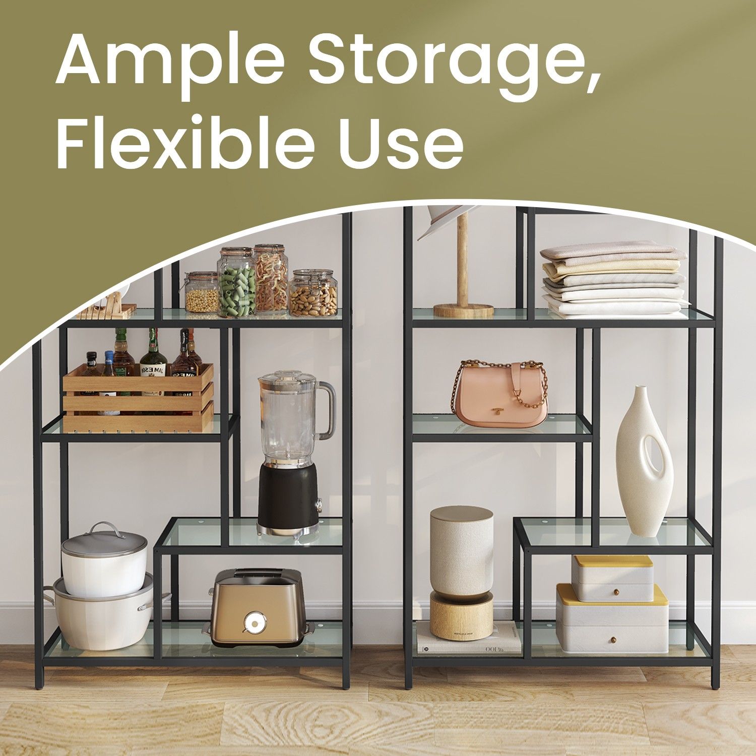 Bookshelf - VERRA 6 Tier Tall Display Shelf - Black