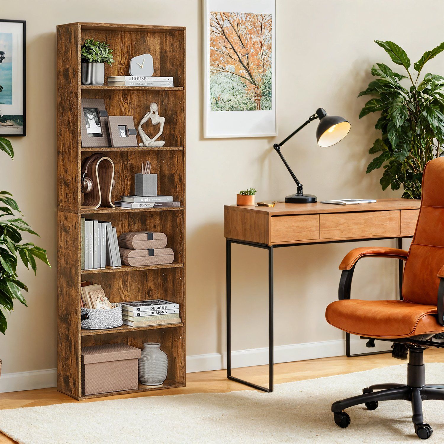 This versatile 6-shelf bookshelf, also known as a bookcase, is perfect for organizing your home office or study. Its sturdy design provides ample storage for books and decorative items. The VASAGLE 4-tier bookcase offers adjustable shelves, making it ideal for children's books and various storage needs, combining functionality with a clean aesthetic.