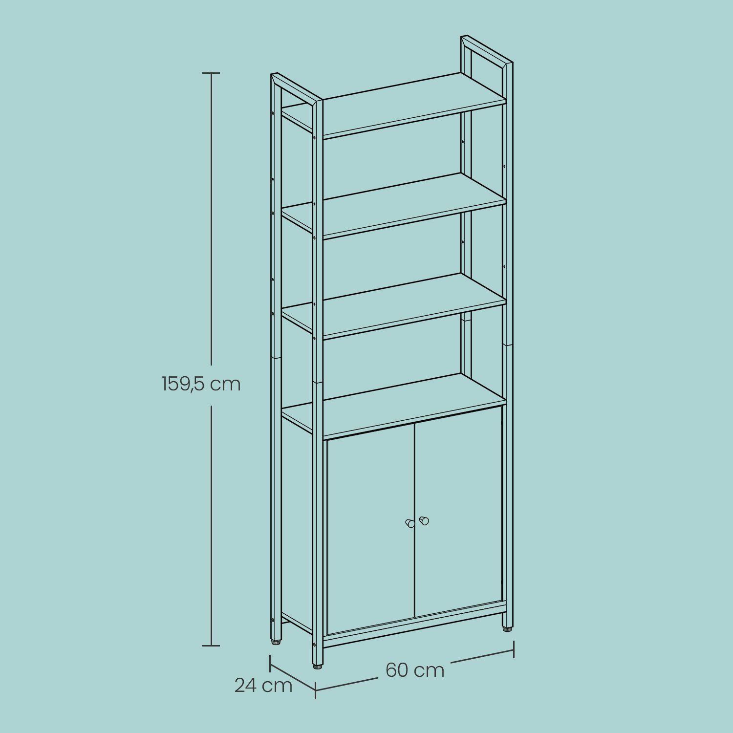 Bookshelf - VERRA Tall 6 Tier with Door Metal Frame - Black