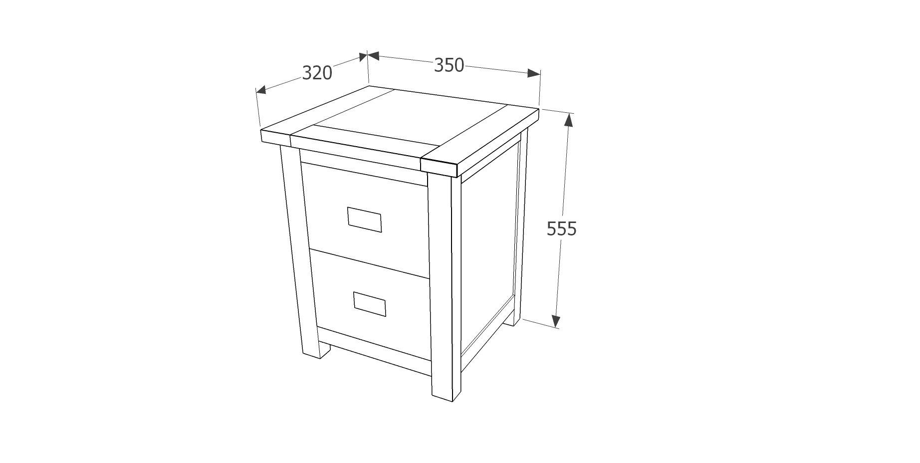 Bedside Table - BOSTON 2 Drawer Nightstand Dark Brown 36cm