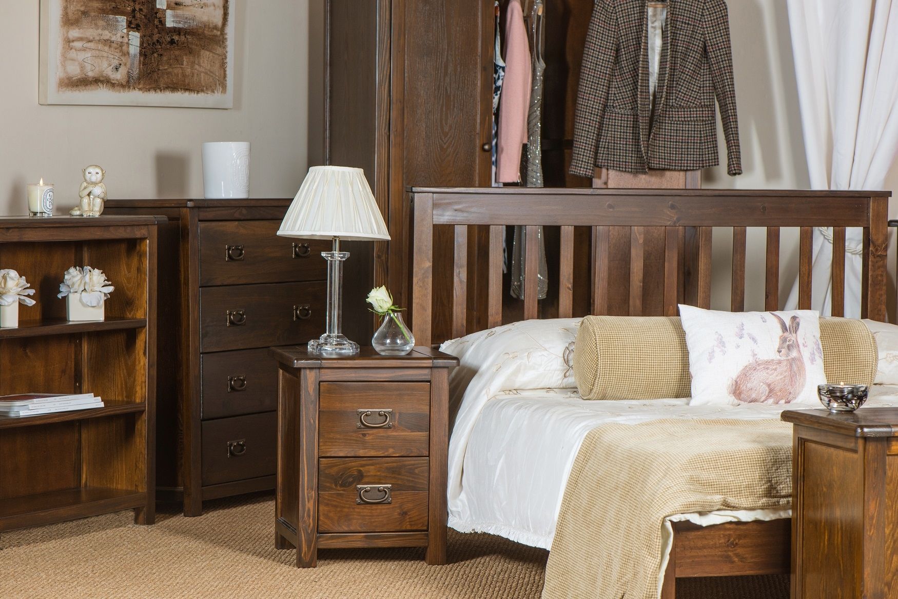 Bedside Table - BOSTON 2 Drawer Nightstand Antique Pine 45cm