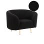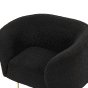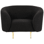 This beautiful armchair exudes a luxury feel, from its golden legs to the soft curves of the upholstered silhouette. Tailored in a nubby bouclé, it looks and feels pleasantly soft and fluffy, adding an inviting look to the space. The thickly padded seat offers comfortable seating, making it the perfect spot for reading or enjoying some late-night TV. The opulent design of the sofa will perfectly complement interiors in eclectic, traditional or mid-century style. Details: Color: Black, Gold. Main material: Boucle. Additional material: Iron, Eucalyptus Wood. Material Composition: 100% Polyester Weight: 27 Assembly: Legs to be Fitted Wood type: Eucalyptus grandis Wood Origin: China Weight Capacity: 150 Padding Thickness: 21 Seat Height: 40