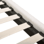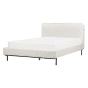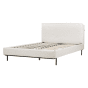 Experience timeless elegance with this classic slatted bed, expertly upholstered in soft-to-the-touch fabric. The headboard adds a touch of sophistication, providing both comfort and style. Supported by a sturdy metal base, this furniture seamlessly blends durability with refined aesthetics, making it the perfect centrepiece for your bedroom sanctuary. Details: Color: White, Black. Main material: Boucle. Additional material: Plywood, Iron. Material Composition: 100% Polyester Weight: 33 Assembly: Full Assembly Required Weight Capacity: 300 Legs Height: 18 Sleeping Surface: 140x200