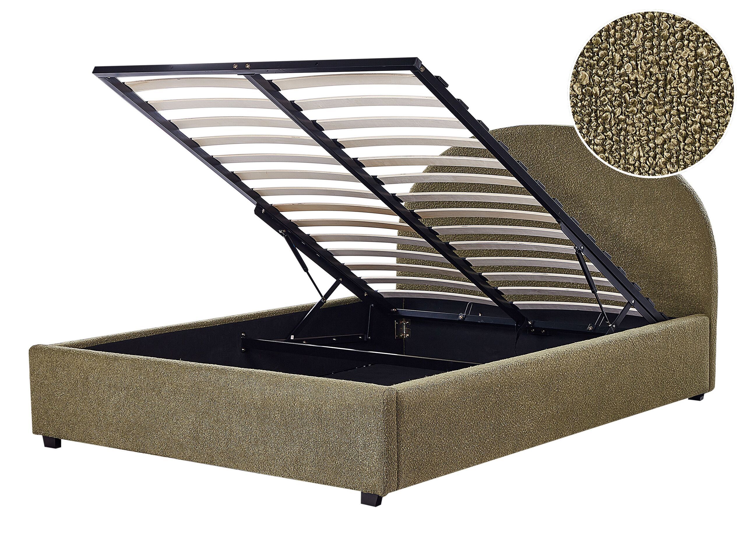 Boucle EU Double Size Ottoman Bed Olive Green VAUCLUSE