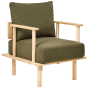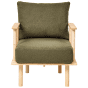 This elegant furniture set, including a two-seater sofa and an armchair, combines minimalist design with natural wooden elements, making it a perfect addition to contemporary living spaces. The soft, boucle dark green cushions provide comfort and style, while the sturdy wooden frames ensure durability. Ideal for both lounging and as a statement piece in your home, this sofa and armchair set effortlessly enhances any room with its warm, inviting charm.