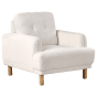 This upholstered living room set is going to be a focal point of your everyday space. Crafted out of durable, high quality boucle fabric, in a timeless white colour, the set, which includes a 3-seater sofa and an armchair, will draw attention with its clean-lined design, thickly padded seats, and buttoned backrest cushions. Additionally, both constructions are placed on a set of wooden legs, which will highlight the retro design of the pieces and guarantee stability. The couch and armchair are also easy to clean, as their pillows feature zippers, so you can quickly remove covers and wash them.