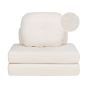 Create versatile comfort with our 1-seater convertible sleeping sofa. Crafted for adaptability, it features 2 seating cushions and 2 scatter cushions, allowing you to arrange them as desired. Transform it effortlessly into an armchair, chaise lounge, or single bed to suit your needs. With removable covers on all cushions, maintenance is a breeze. Enjoy multifunctional living with this stylish solution. Details: Color: White. Main material: Boucle. Material Composition: 100% Polyester Weight: 14 Capacity: 1 Person Assembly: Partial Assembly Required Cushions Dimensions: 50x60 Padding Thickness: 32 Seat Height: 32 Sleeping Surface: 81x182