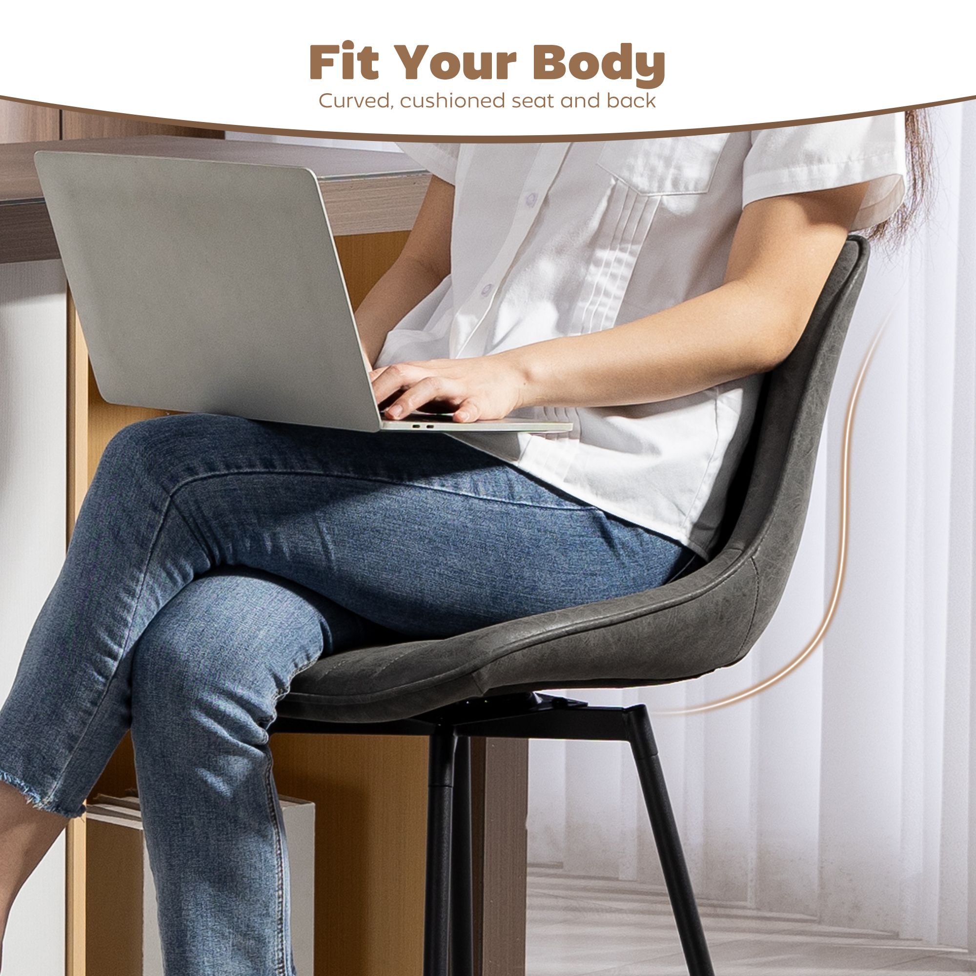 Tired of your kitchen island feeling disconnected and your seating uncomfortable? Conversations become stiff when everyone faces forward, and you cut chats short due to discomfort. The BRADNOR bar stools transform your space. With a smooth 360-degree swivel, conversation flows freely. Curves lines invite you to relax, turning your counter into a sophisticated hub for connection. These kitchen stools redefine your home's social heart.