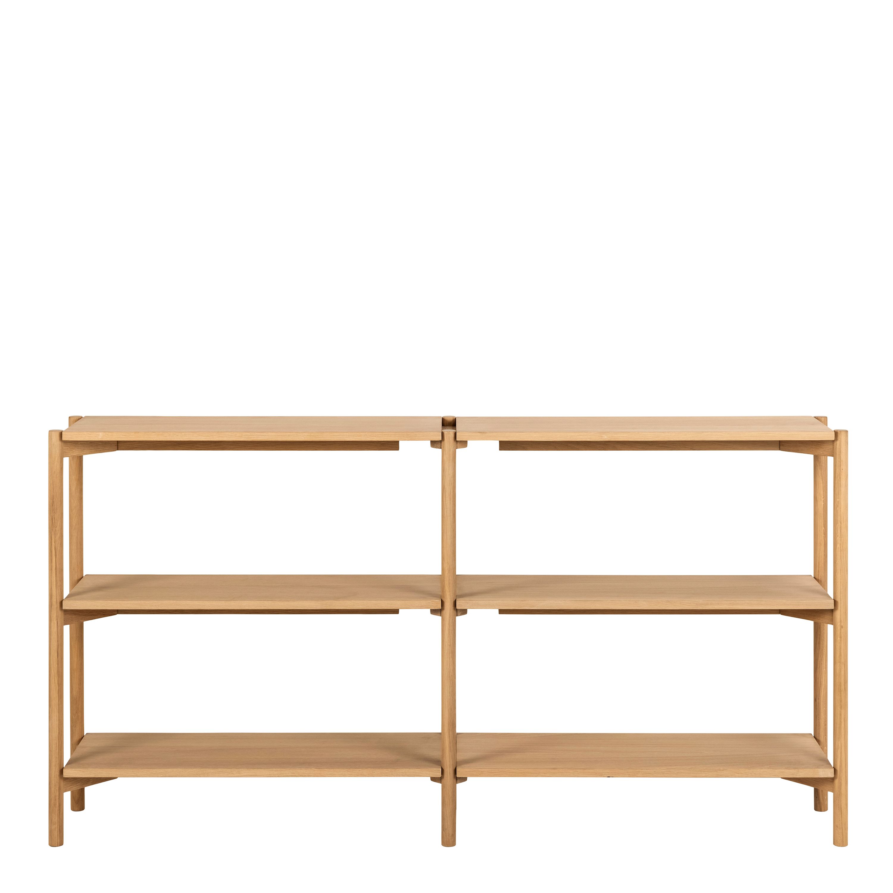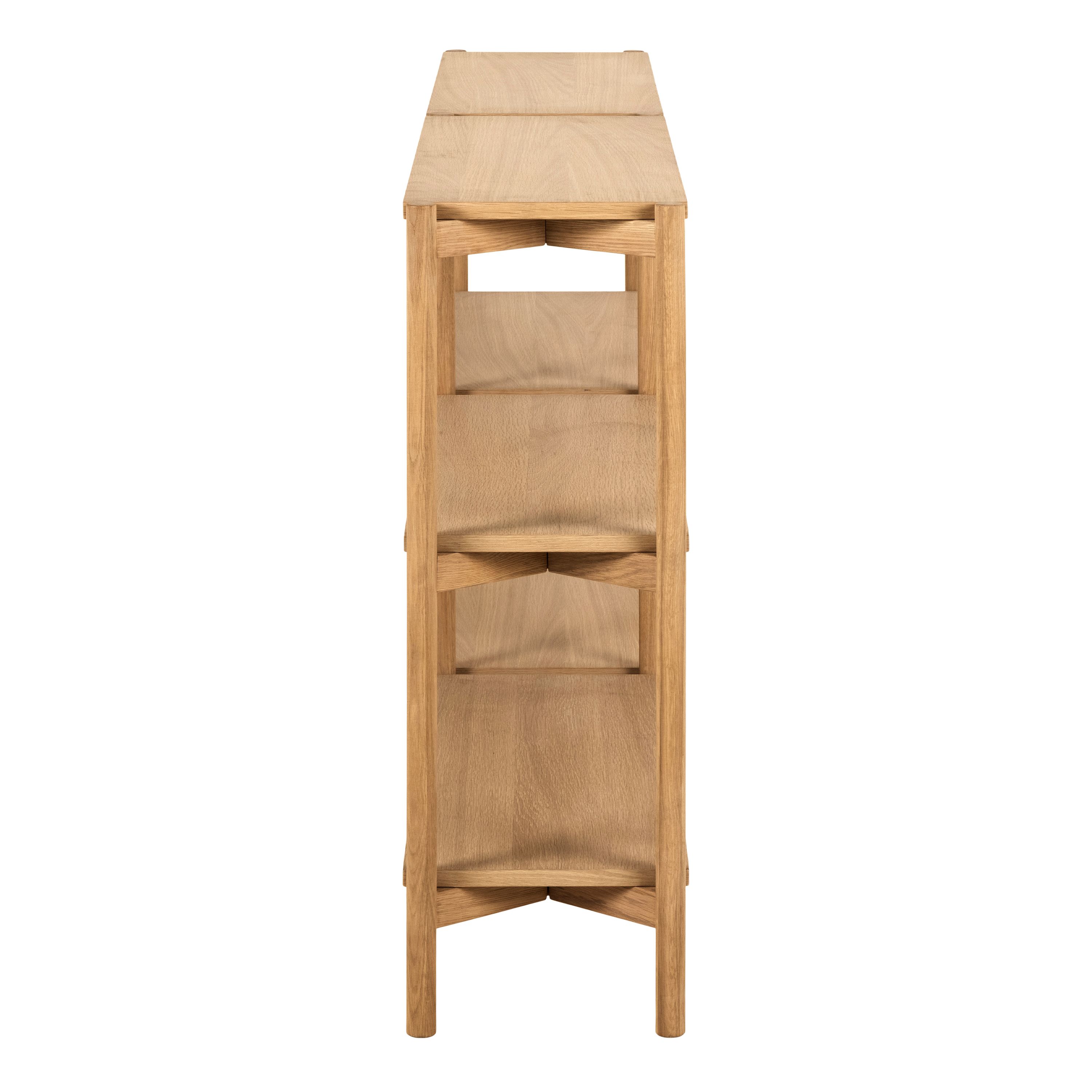 Step into a world of understated elegance with this bookcase, featuring a sturdy frame and base of oiled oak, paired with four ample shelves of oak veneer, ready to display your favorite reads and treasures