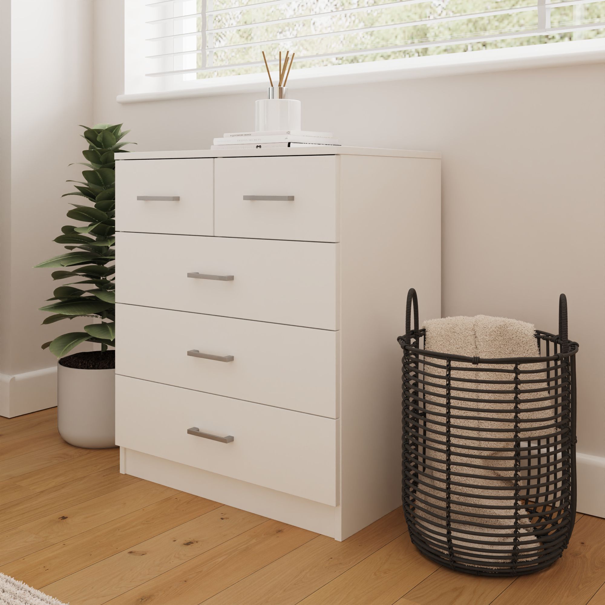 The BRAIL Medium-sized Chest of Drawer brings effortless simplicity to your space with its clean white finish and modern minimalist design. Each piece blends smoothly into any style of decor and offers practical storage with a calm contemporary look. From spacious wardrobes to refined chests and bedside tables, BRAIL provides everything needed to create a tidy and relaxing bedroom. Stylish and effective the range shows how minimalism can be both beautiful and functional