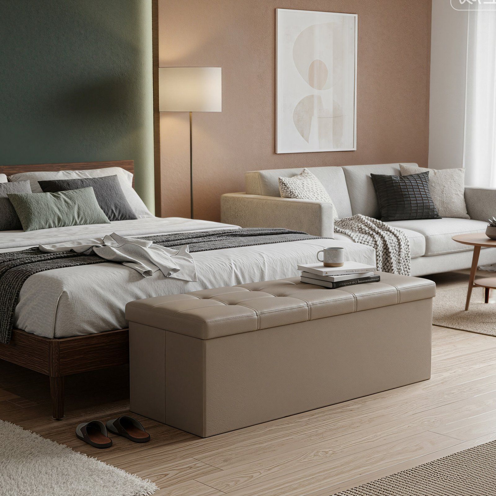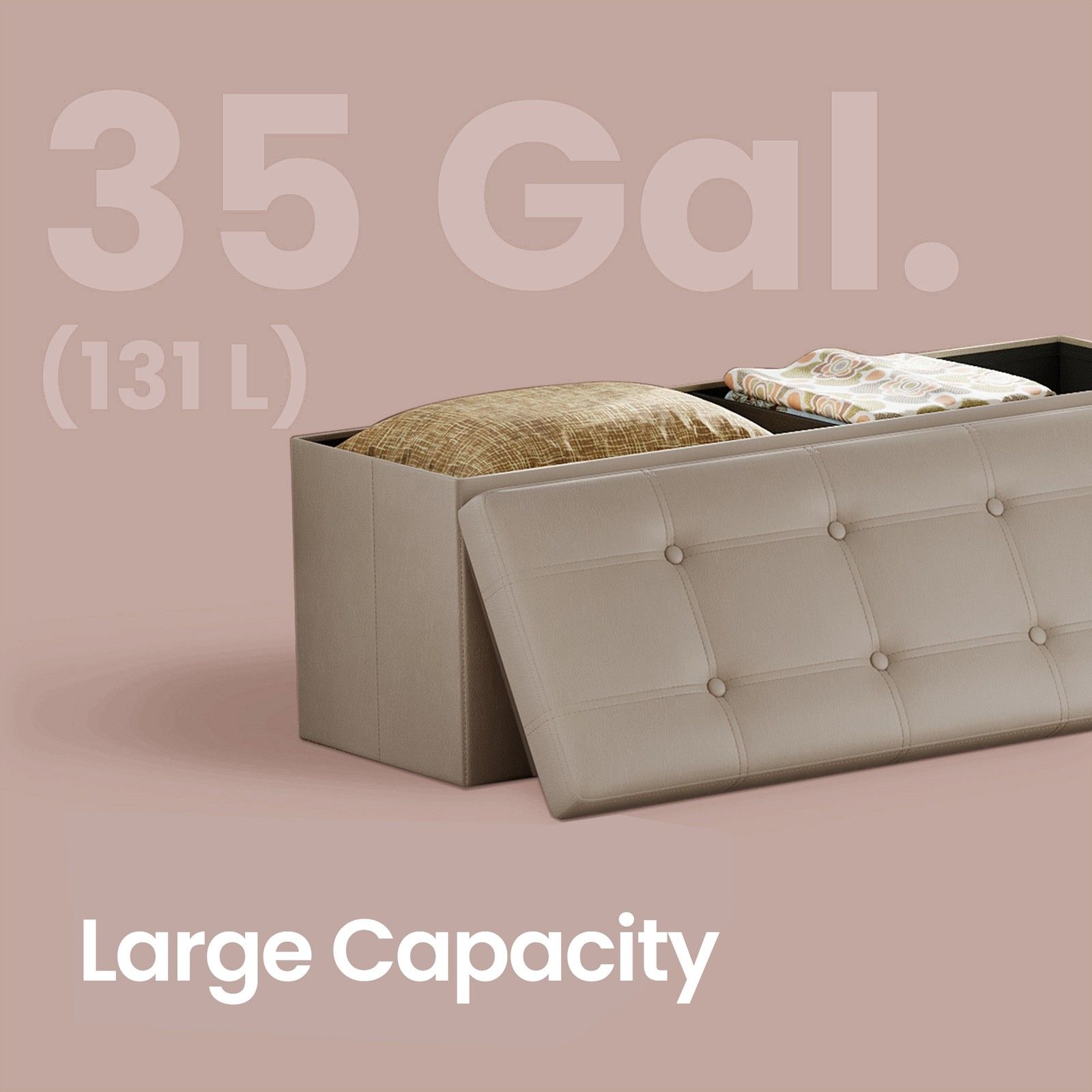 BRAMBLECREST Folding Storage Bench Ottoman Seat with Internal Storage - Camel Brown