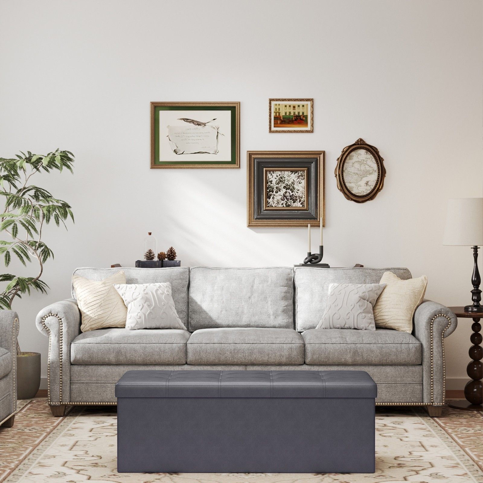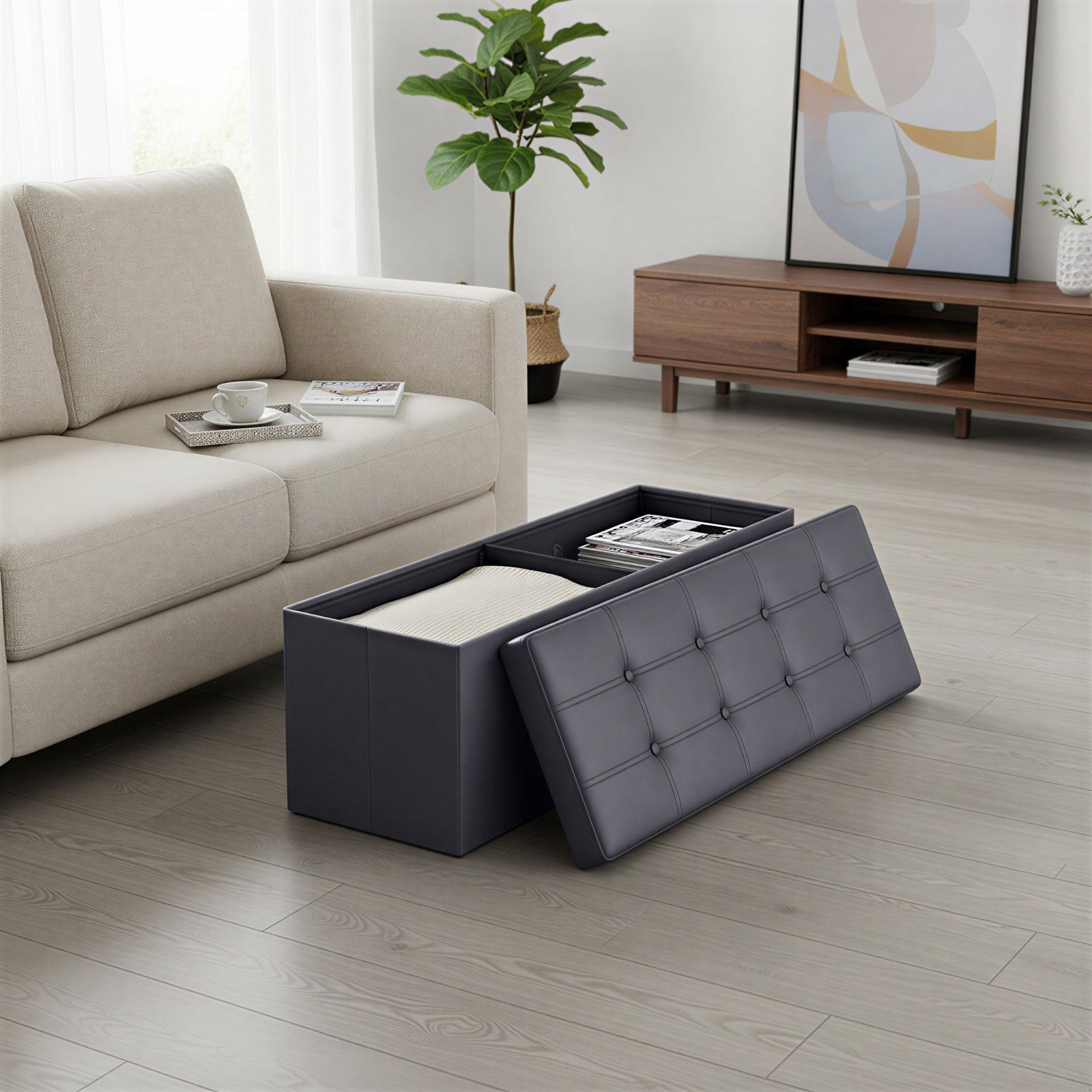 BRAMBLECREST Folding Storage Bench Ottoman Seat with Internal Storage - Grey