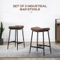 Breakfast Bar Stools Set of 2, Microfibre Upholstered Barstools, Industrial Bar Chairs with Curved Seat and Steel Frame