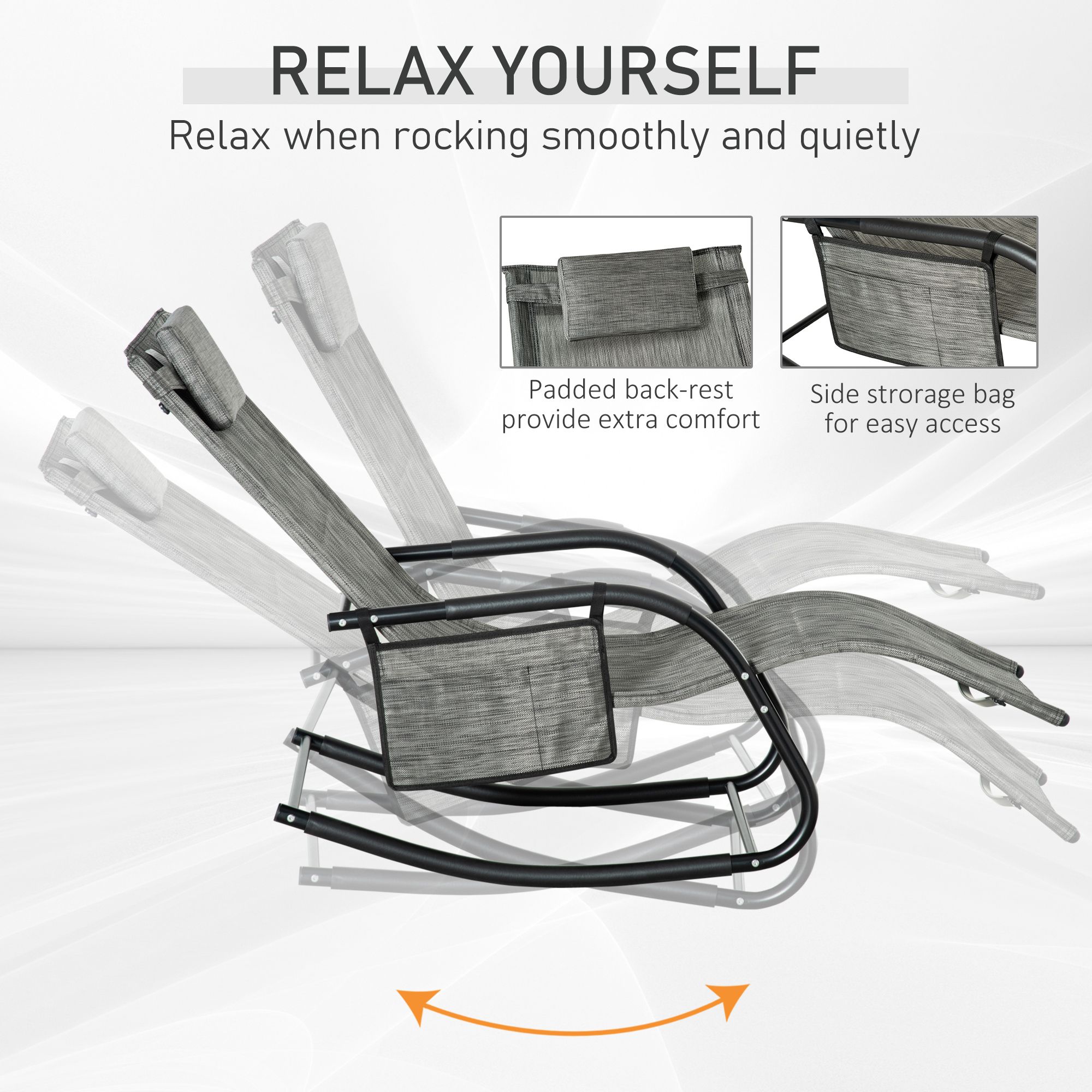 Breathable Mesh Rocking Chair Patio Rocker Lounge for Indoor & Outdoor Recliner Seat w/ Removable Headrest for Garden and Patio Dark Grey