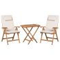 Sit comfortably and enjoy your morning coffee on the balcony with this practical bistro set. Made from high quality acacia wood, it makes a perfect match with virtually any setting thanks to the natural, light finish. The chairs and the table can be folded for easy storage when out of season. Besides that, the set is also equipped with thickly padded cushions for the chairs. The high quality fabric is easy to care for, while the seams are carefully finished and are almost invisible. Thanks to the UV and water resistant material used, the pillows are sure to last for many years, with the colour staying rich and adding style to your outdoor space.