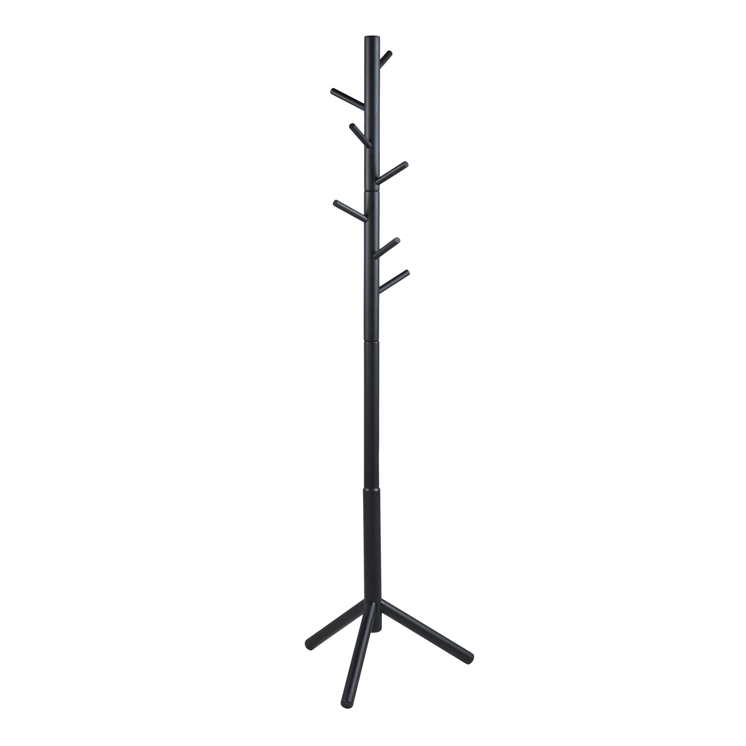 Welcome a touch of modern sophistication with the Bremen coat hanger, boasting a bold black NC lacquered rubberwood frame and base, complemented by unique asymmetrical details for a chic organizational solution