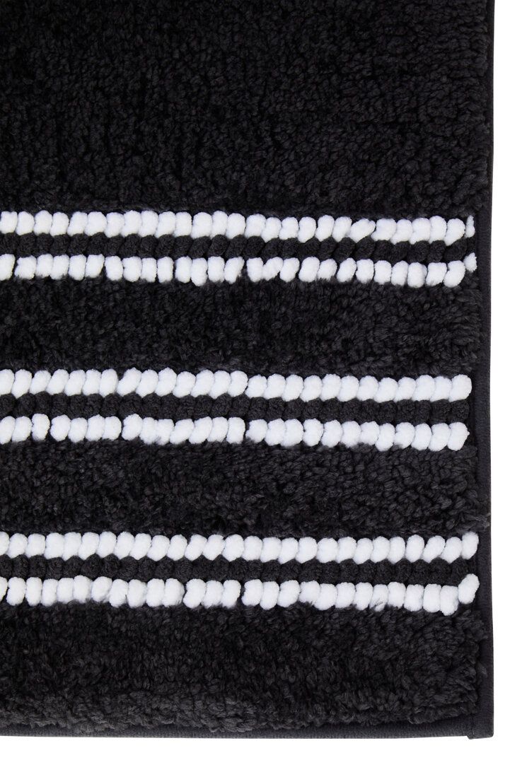 This charcoal grey bath mat brings contemporary style and everyday comfort to the bathroom, featuring a textured surface with contrasting stripe detailing.