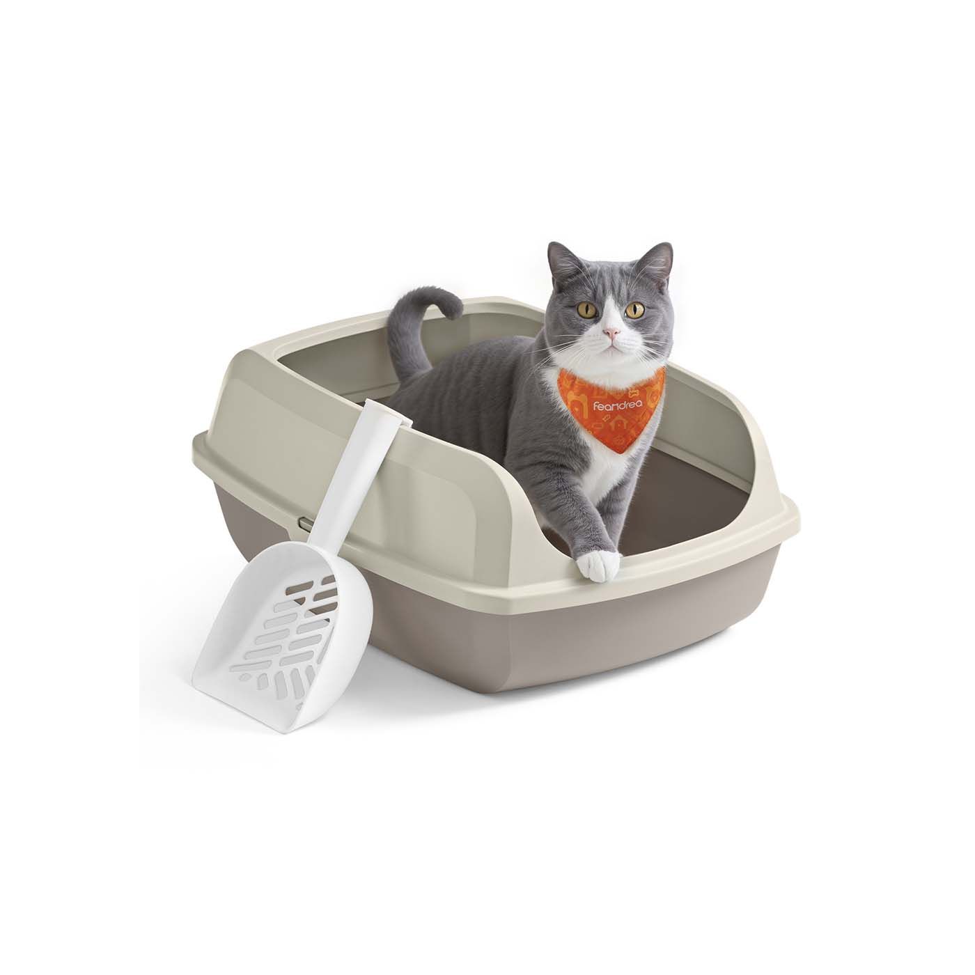 BRIARFORDE High Sided Open Cat Litter Tray with Scoop - Beige, 37.5cm