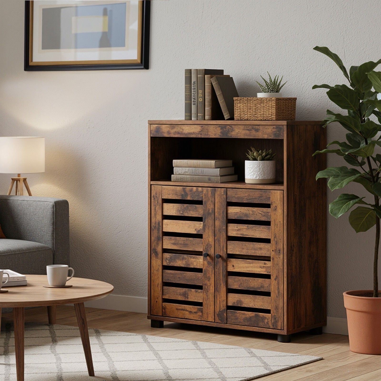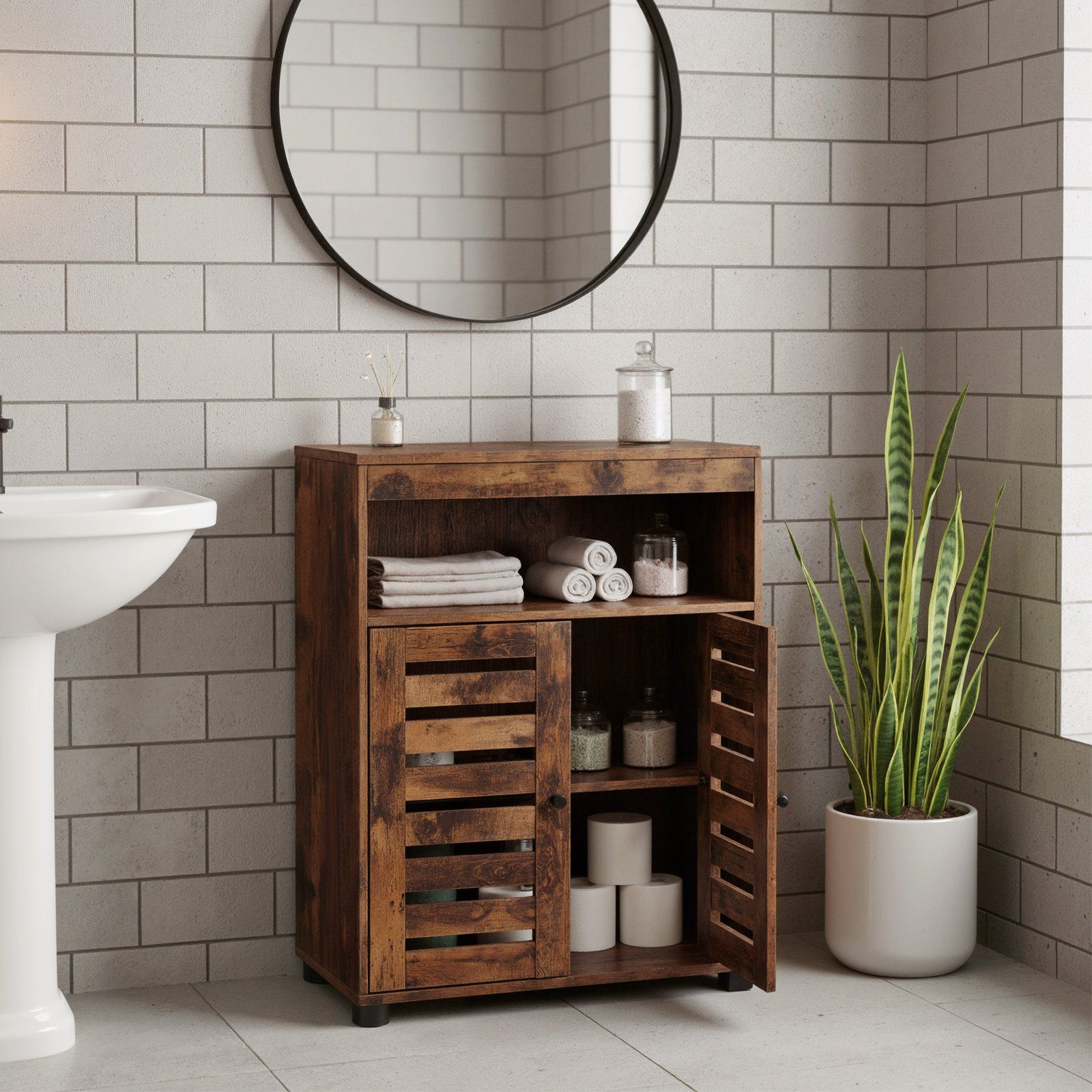 BRIARSTEAD 4 Tier Bathroom Cabinet with Adjustable Board, Louver Doors and Compartments - Brown