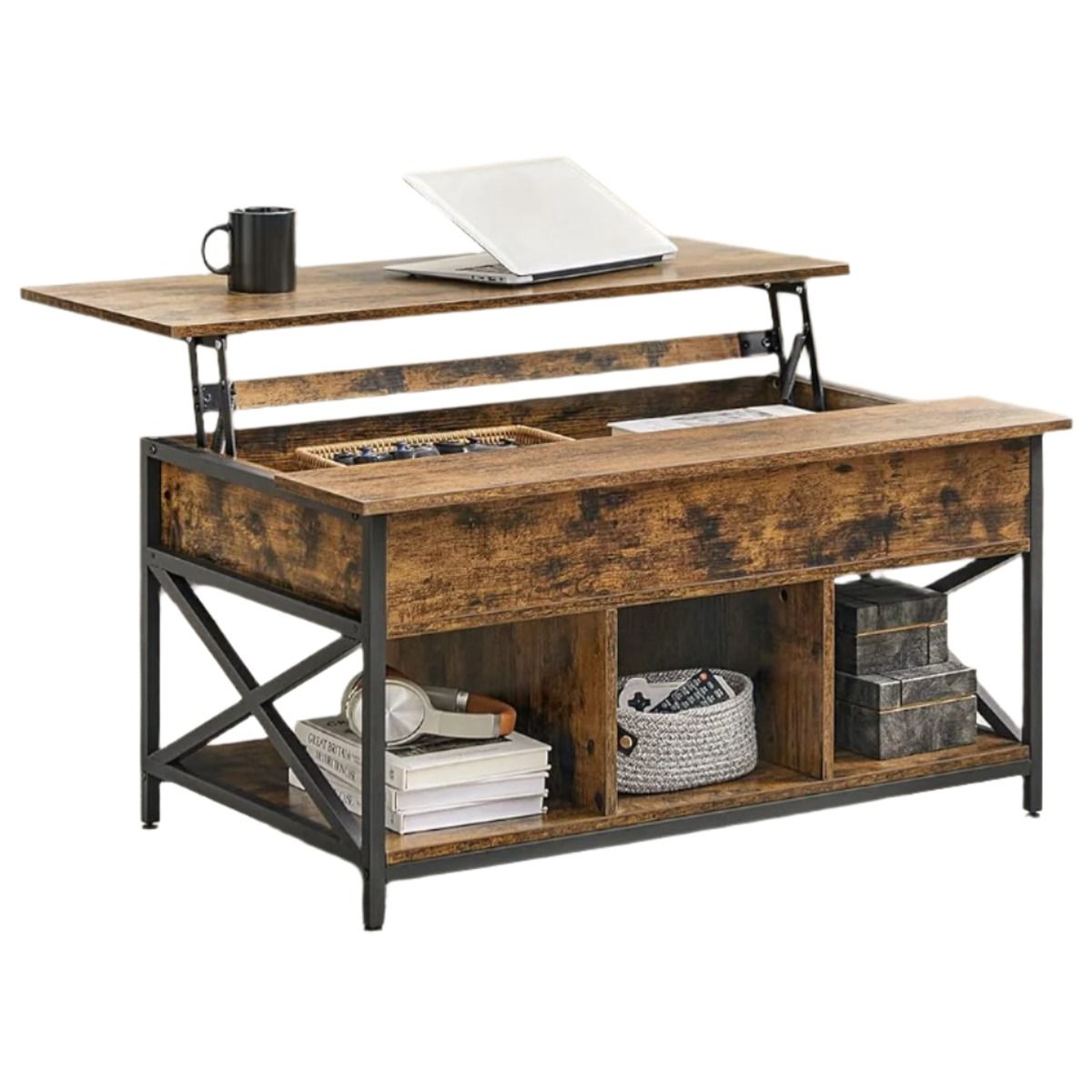 BRIDMERE Coffee Table Lift-Top Extendable Table with Storage Compartment - Rustic Brown