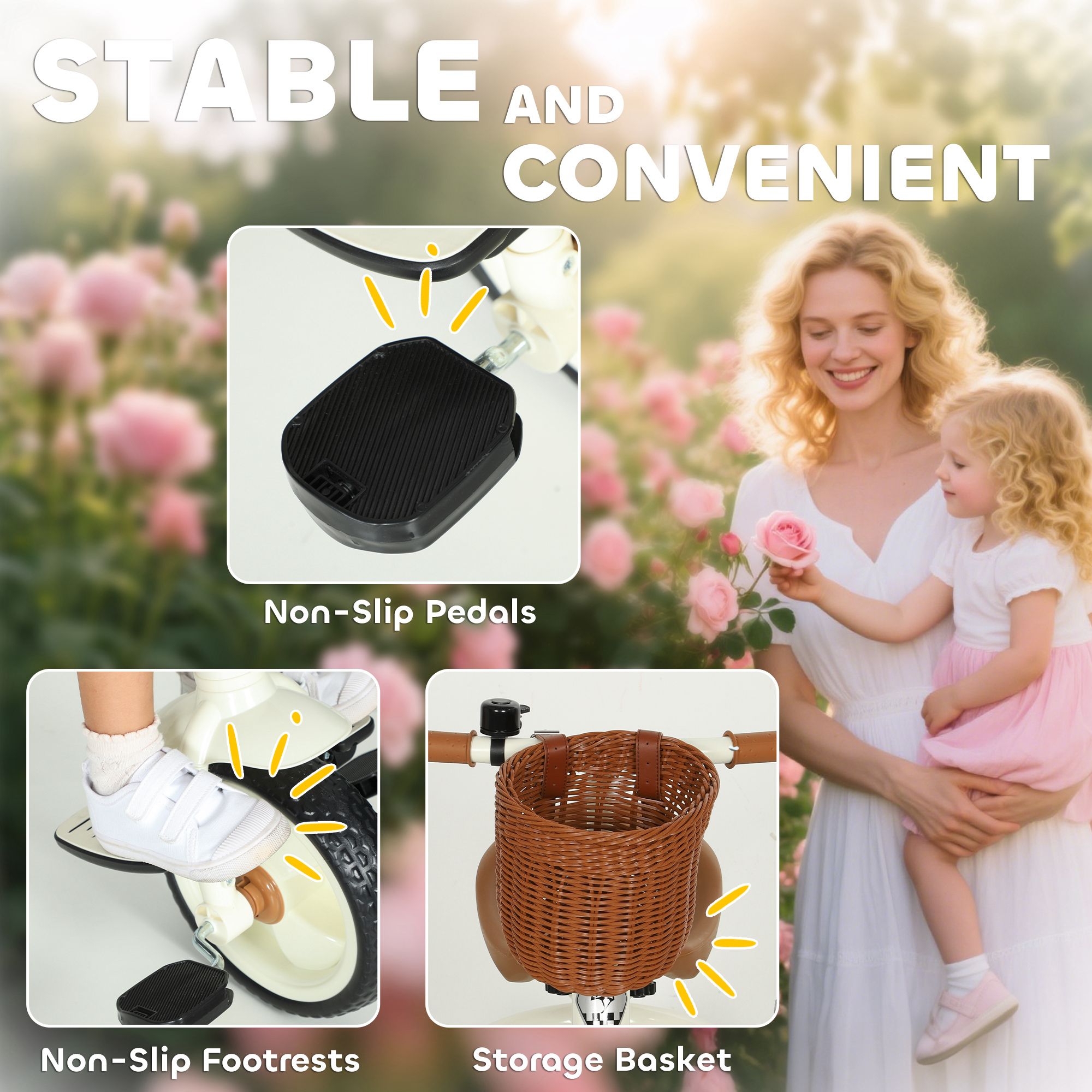 BRILON Toddler 2 In 1 Pedal Tricycle with Adjustable Handle Basket - White
