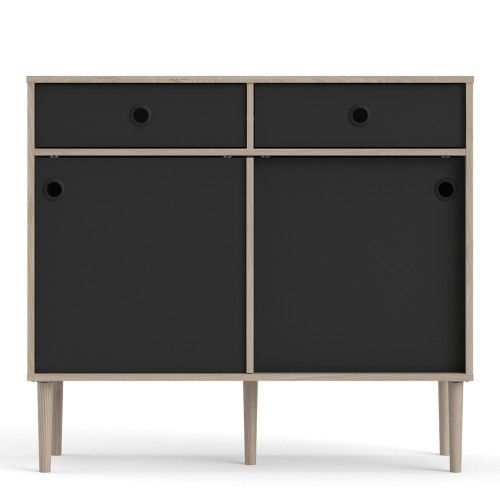 Bristol Solid Wooden 2 Sliding Doors Sideboard with 2 Drawers - Oak With Matt Black