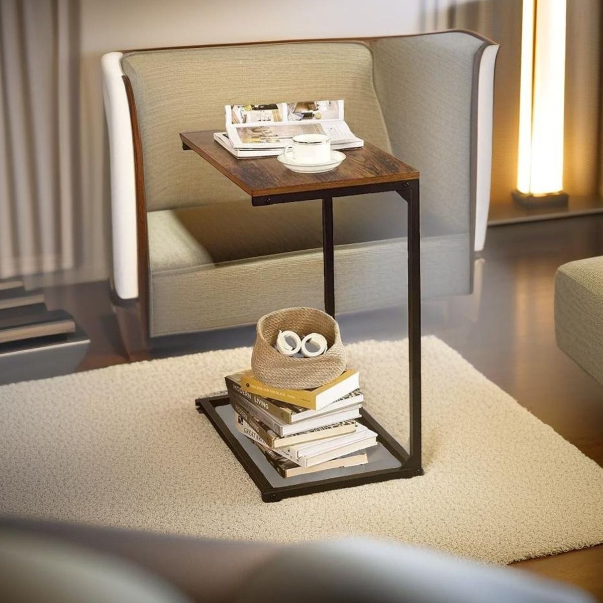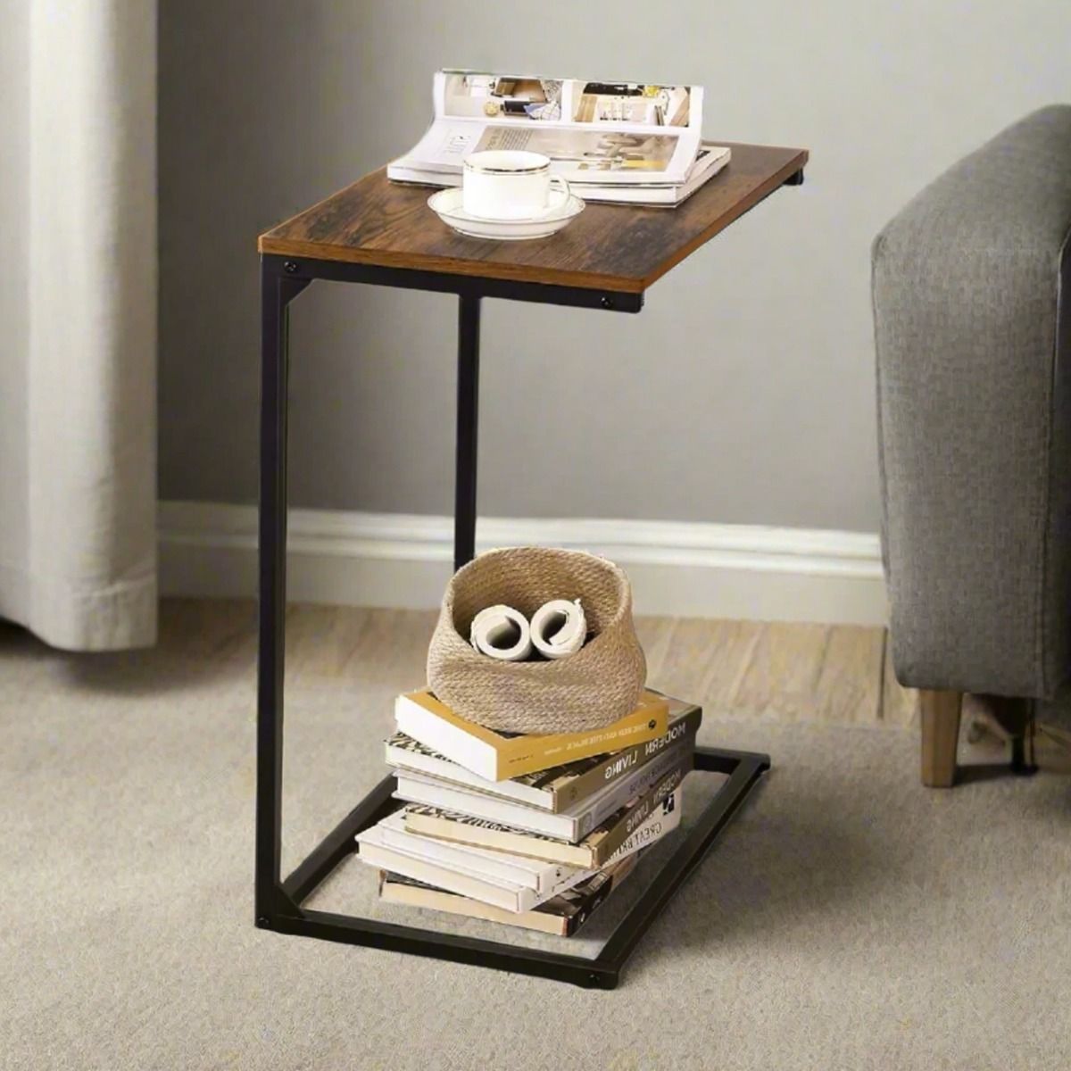 BRISTONE Side Table Small Laptop Table for Sofa or Bed - Rustic Brown and Black