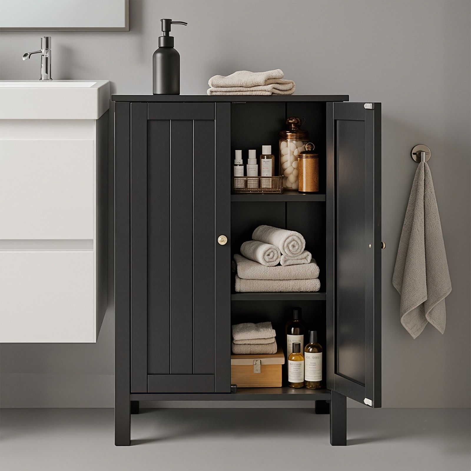 BRISTOWELL Double Door Bathroom Cabinet - Black