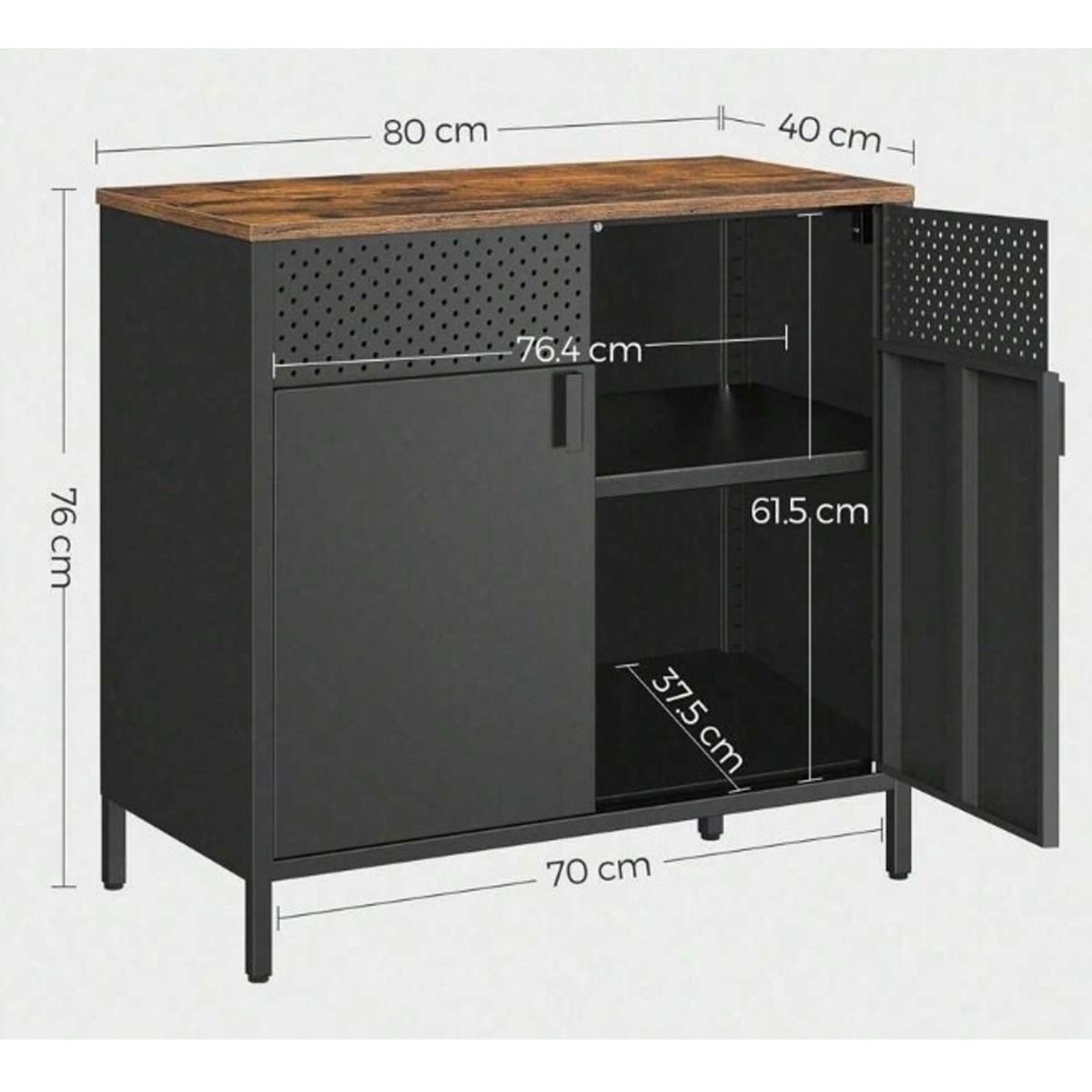BRIVANE Storage Cabinet Floor Standing Cabinet with Door and Adjustable Shelf - Rustic Brown and Black