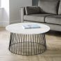with a round white marble finished top, this coffee table is on-trend with a contemporary industrial feel.