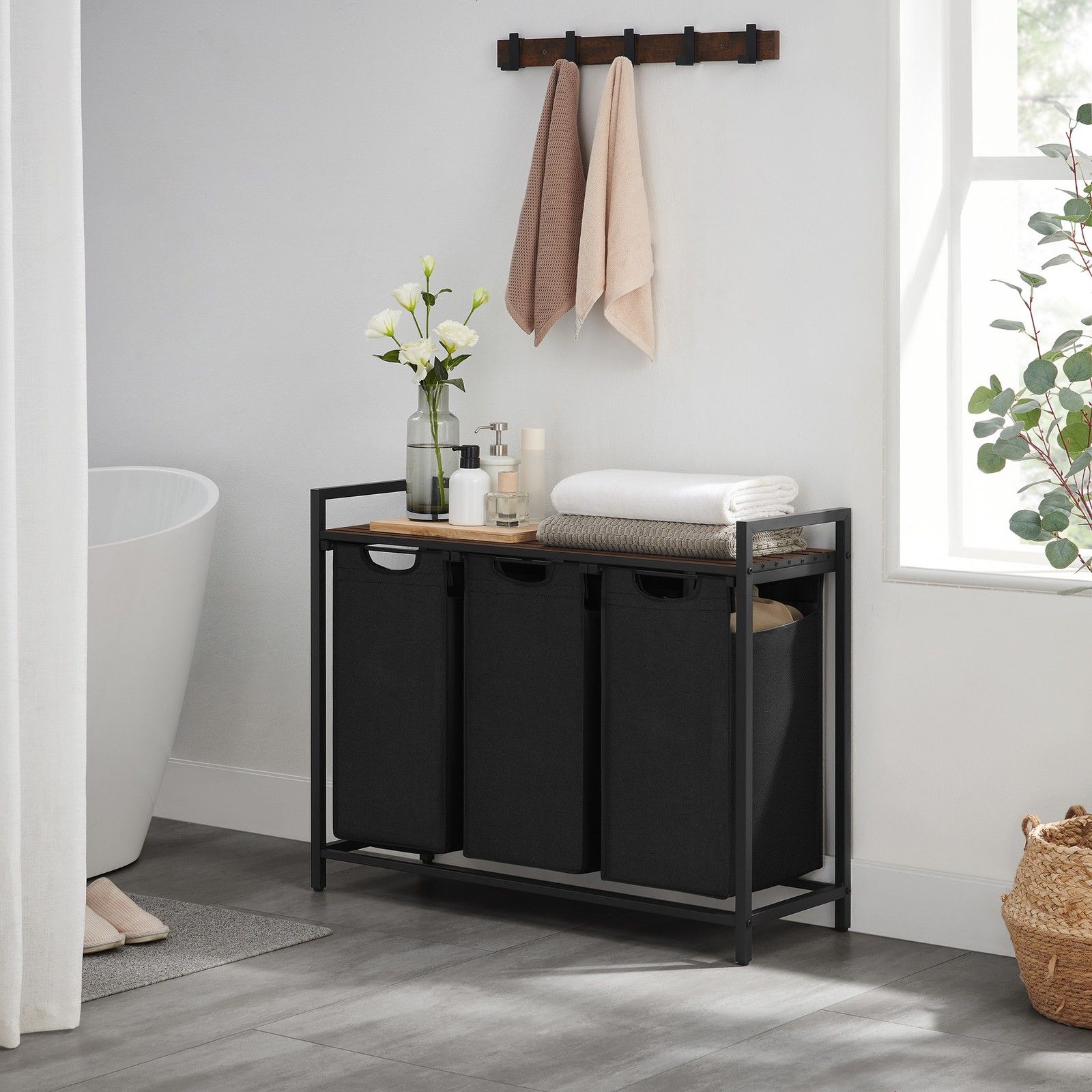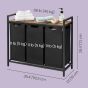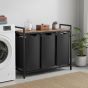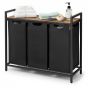 BROCKWELLN 3 Section Metal Laundry Basket with Removable Liner Bags - Medium Oak with Black
