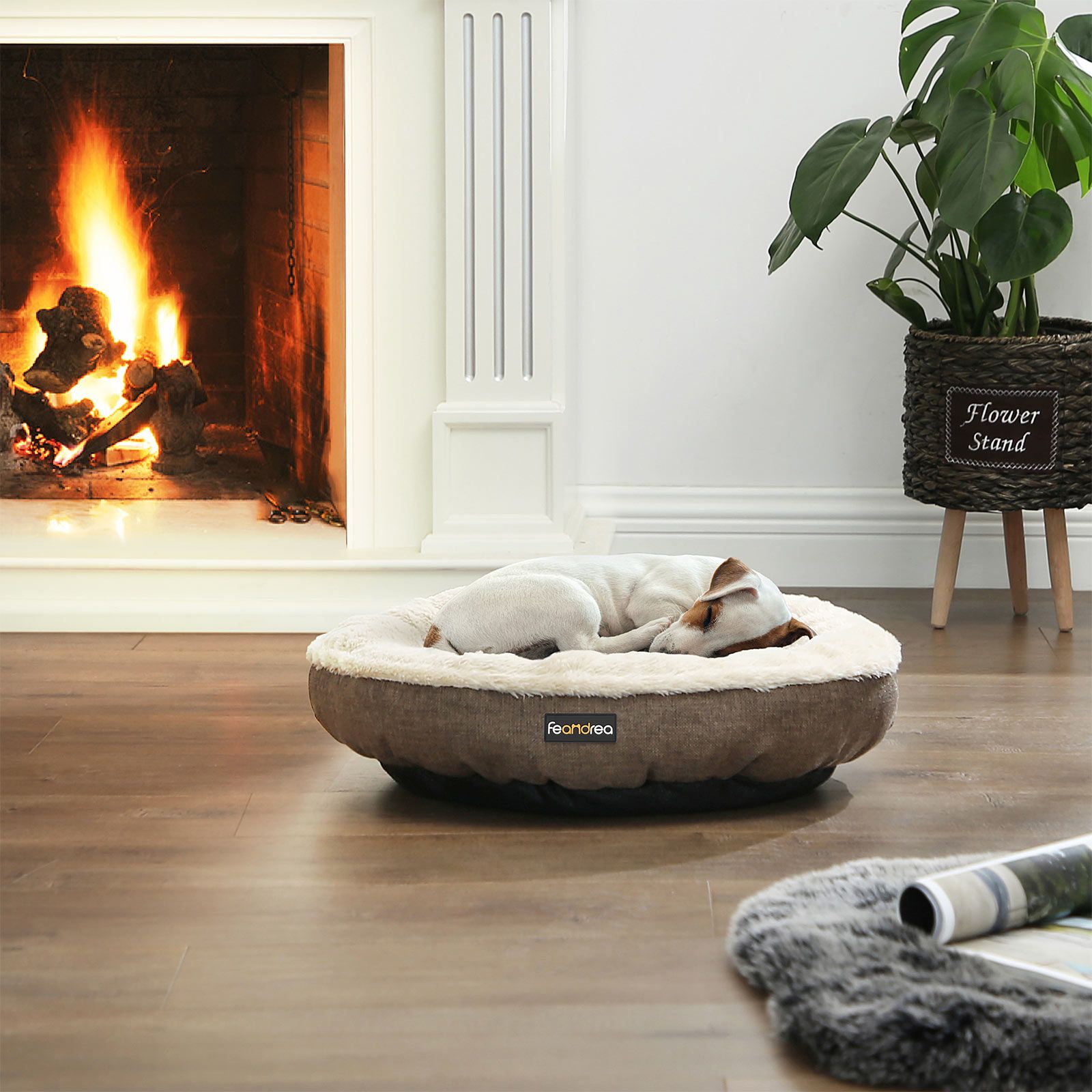 Come on and Enjoy Your New Bed: This round dog bed gives your four-legged friend a cosy retreat where he can rest and sleep. This 55 cm dia. bed is particularly suitable for small dog breeds such as Chihuahuas, Maltese, or miniature pinschers. But also cats like Snowshoe cats, European Shorthair or Australian Mist will feel comfortable on this couch.Wherever You and Your Dog Go: Does your dog accompany you at every turn? Spoil your faithful friend with this fluffy dog bed that can go where you go, even when travelling to the office or your friends' house. It's particularly light, compact, and even can be folded up and stored in a bag if required. This way, your darling experiences the highest comfort everywhere and doesn't always have to get used to a strange sleeping place.