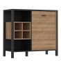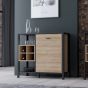 Broxtowe Matt Black Metal Frame Display Cabinet with Door and 4 Open Storage - Riviera Oak