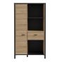 Broxtowe Matt Black Metal Frame Wide Shelf Unit with Door, Drawer and Shelves - Riviera Oak