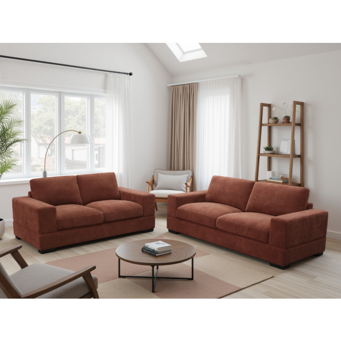 The BRUNELLO Fabric 3 and 2 Seater Sofa Set is designed to bring comfort, style and practicality into your living space. Finished in a beautiful berry tone, it blends effortlessly with modern and classic interiors. Generous cushioning and supportive seating provide a relaxing experience for everyday use. Strong internal construction ensures durability, while quality upholstery offers a soft and premium feel. Its thoughtfully designed shape maximises seating comfort and enhances room layout. Perfect for family lounging or entertaining guests, this piece delivers lasting comfort and visual appeal. A stylish and reliable addition created to elevate your home environment.