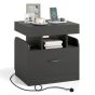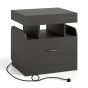 BRYNTON Nightstand with Charging Station with Drawer and Sliding Top Storage-Black