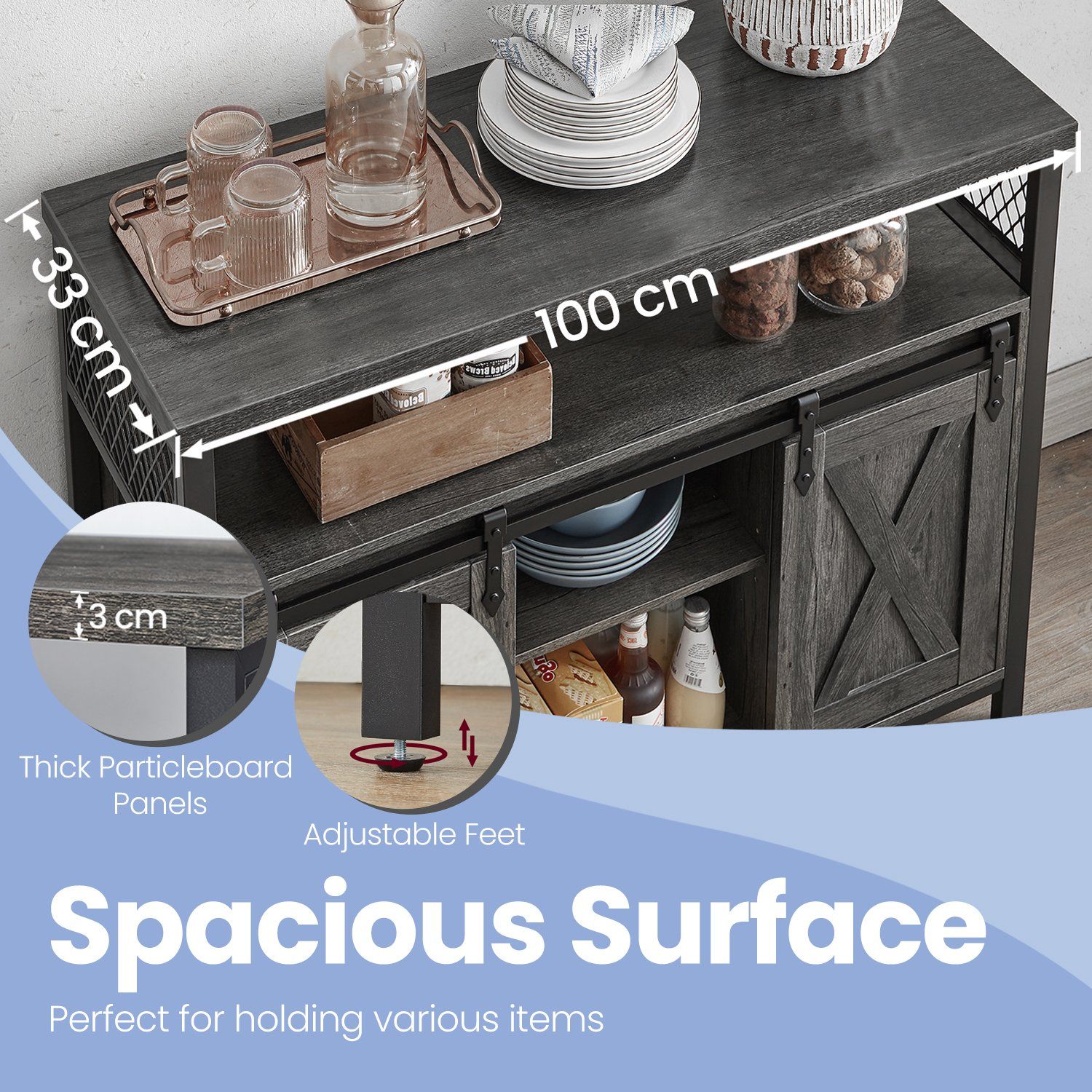 Buffet Cabinet - VERRA Barn Door Sideboard with Adjustable Shelves - Charcoal