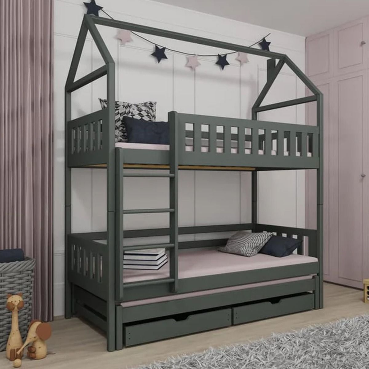 Bunk Bed - STACKWELL Bedframe with Foam Bonnell Mattress - Graphite