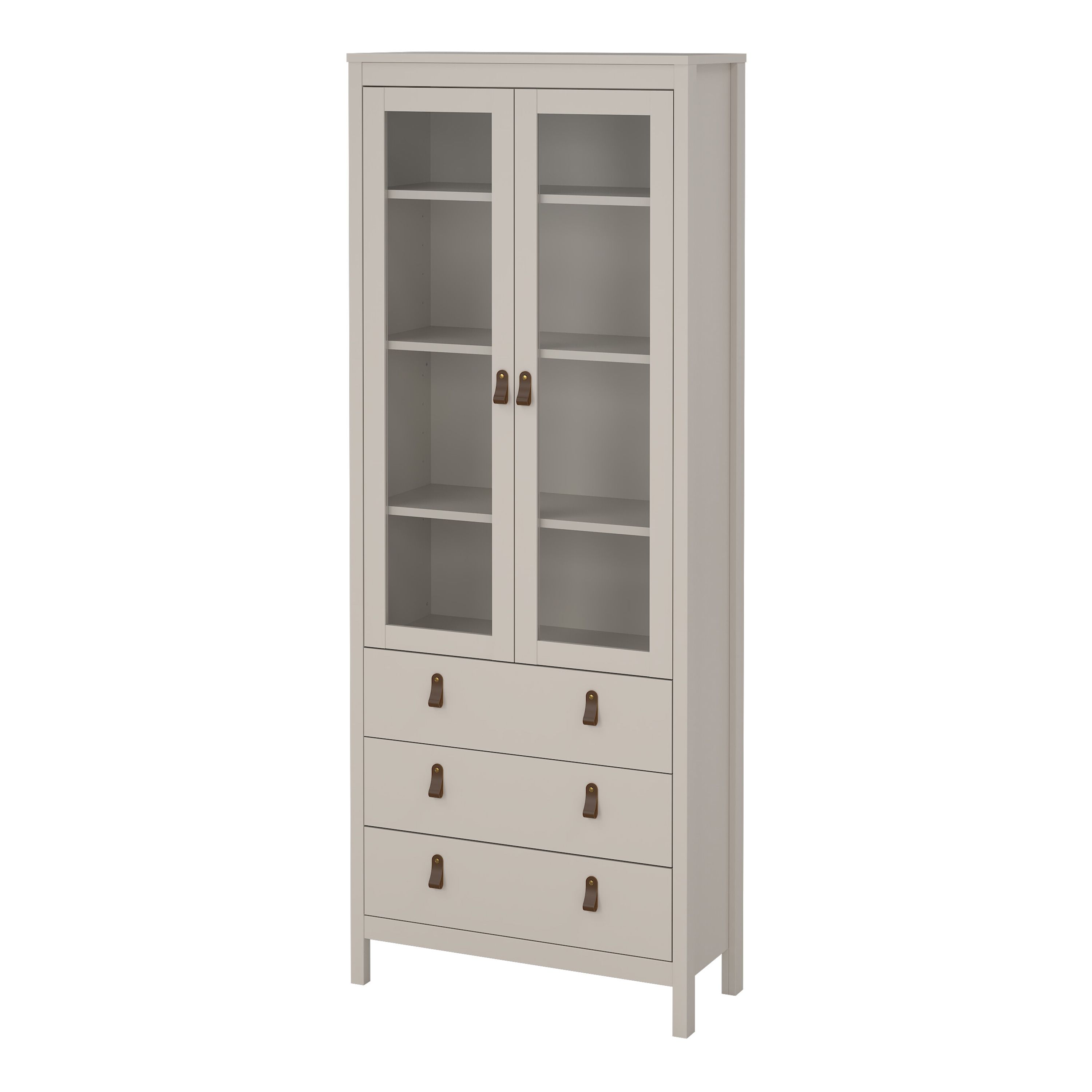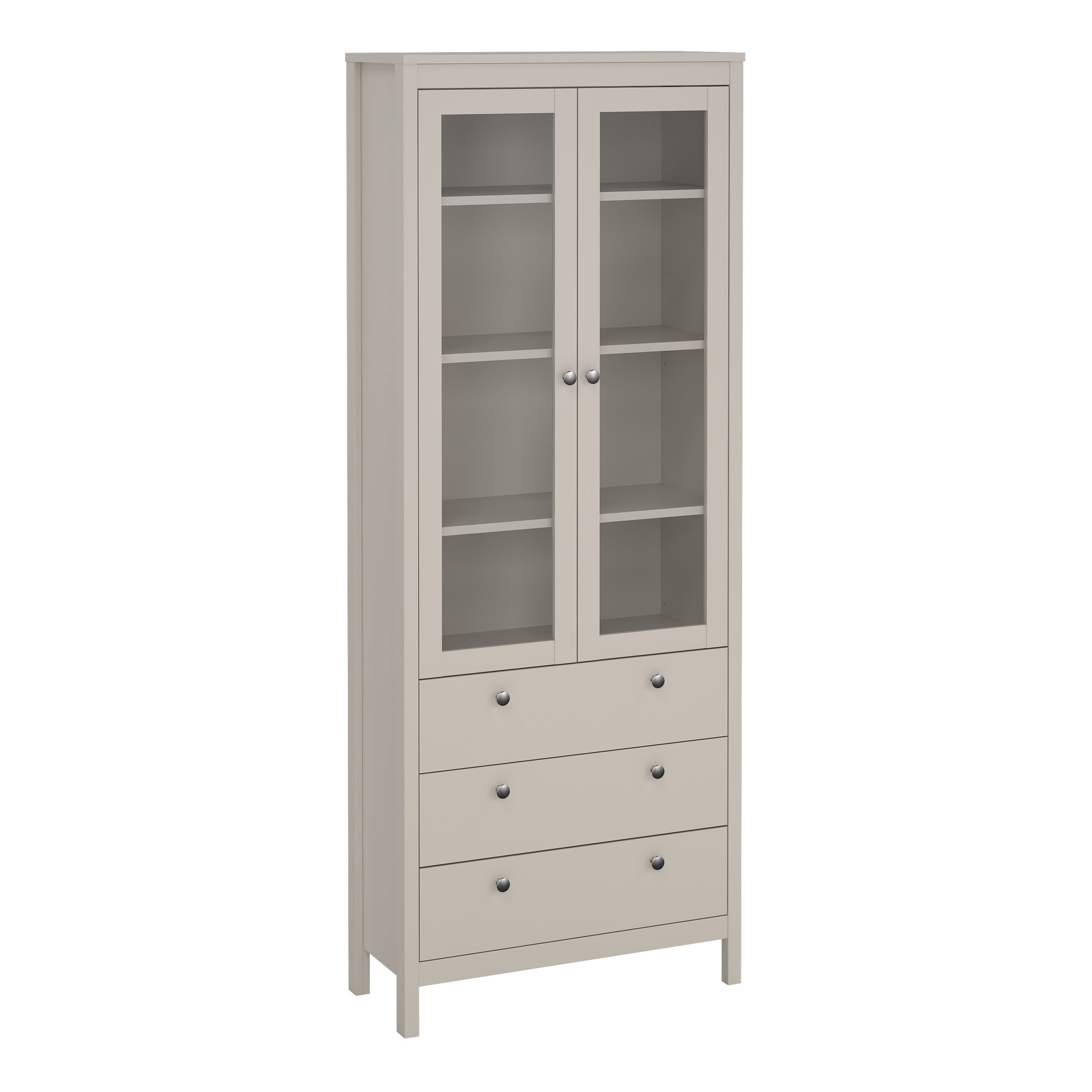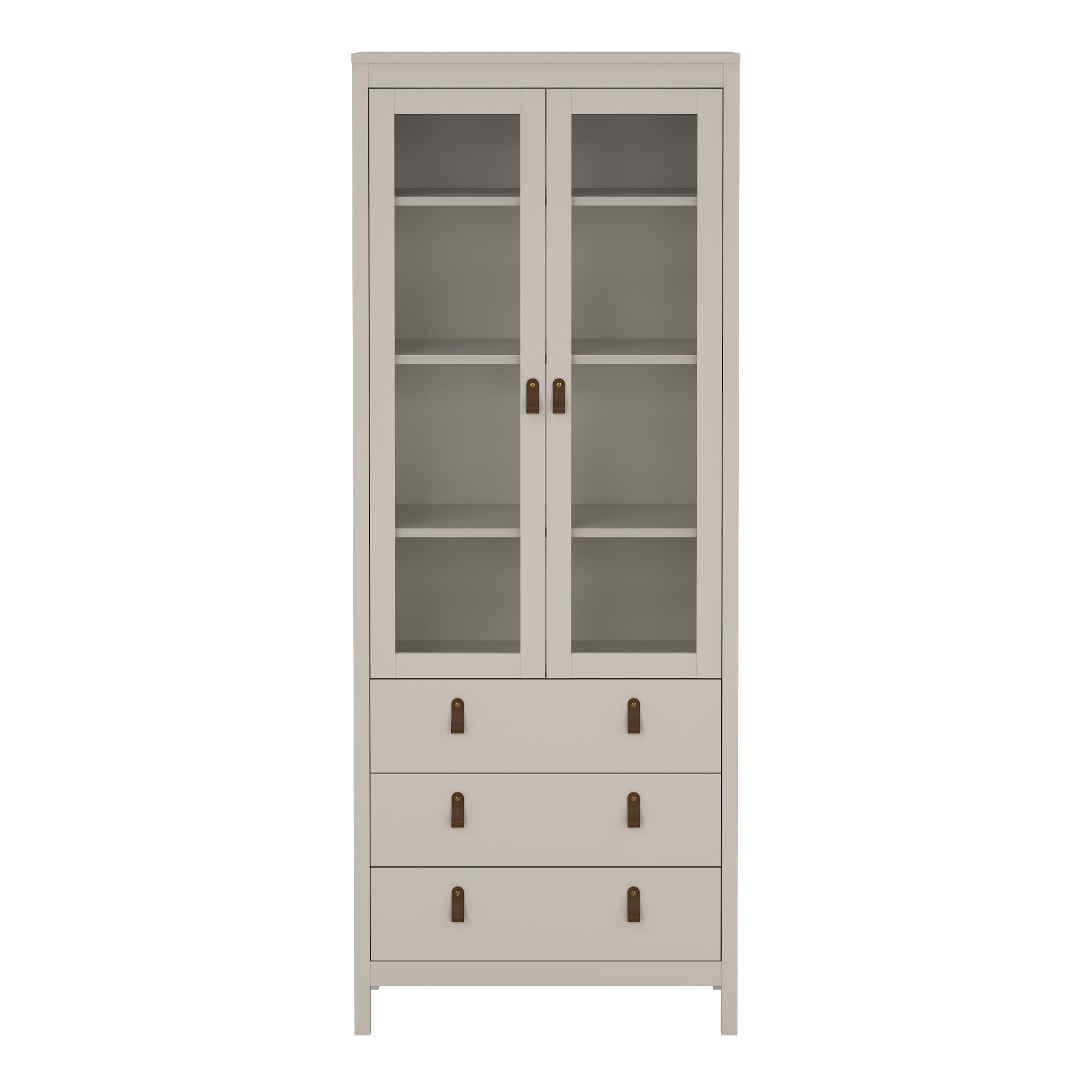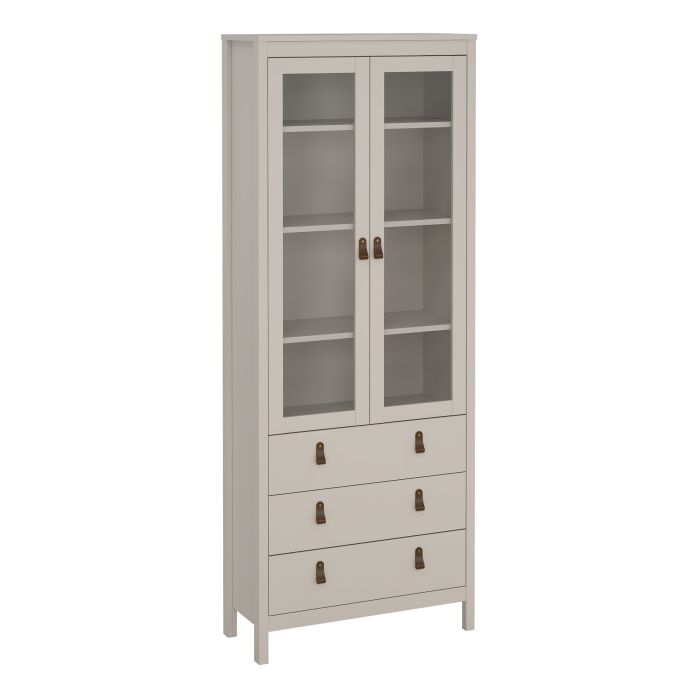 BURNLEY China Cabinet 2 Glass Doors with 3 Drawers in Beige