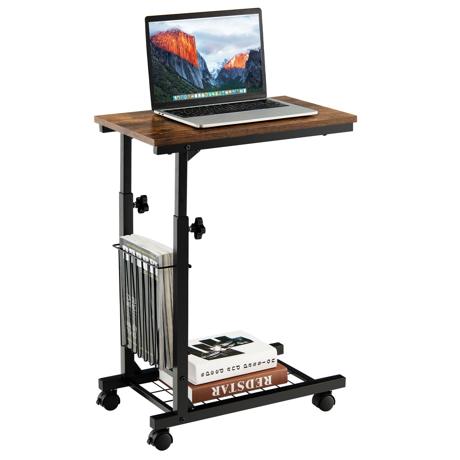 C-shape Adjustable End Table with Storage Basket-Rustic Brown