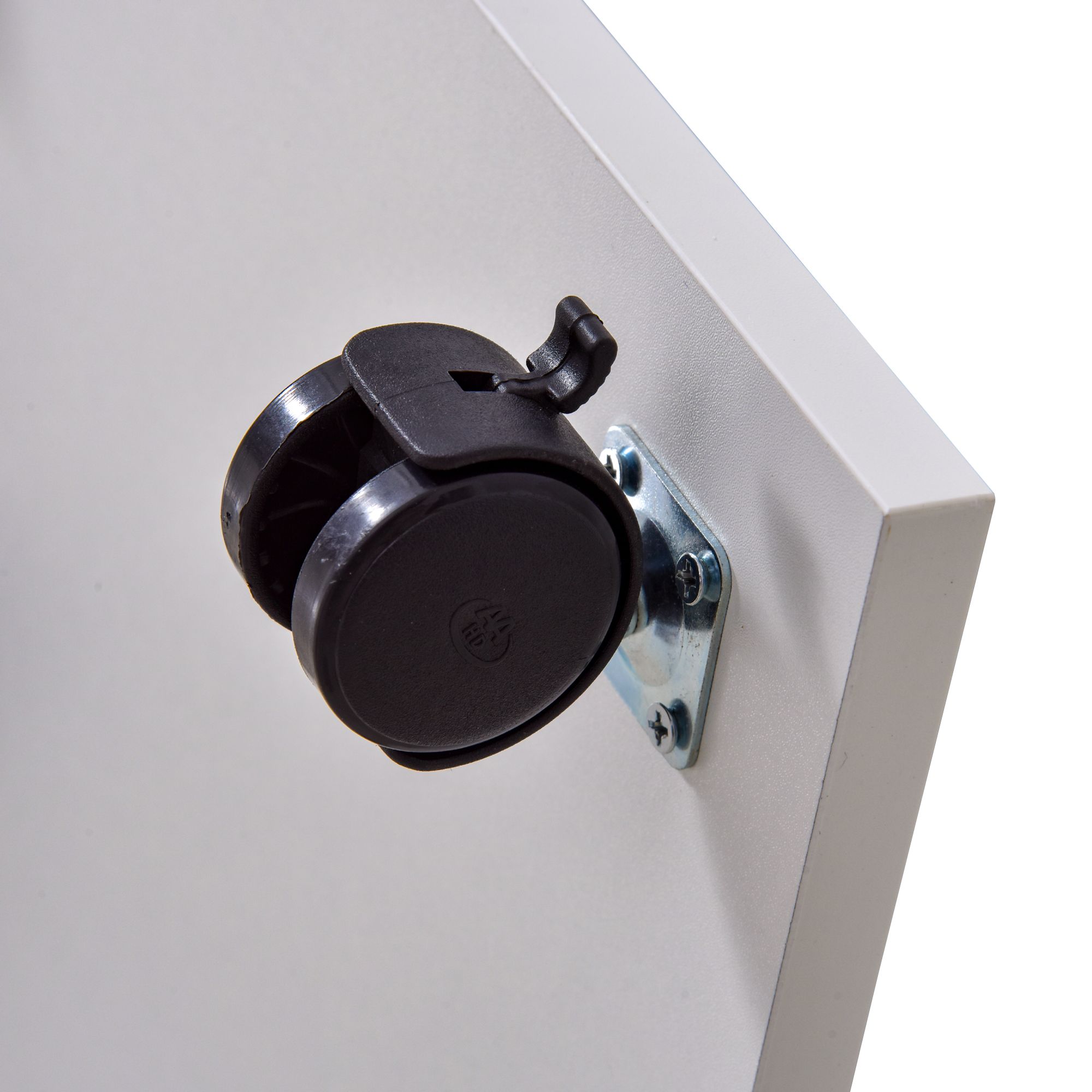 - FOUR WHEELS: Allows easy movement. Two can be locked to keep in place. DIMENSIONS: 58H x 45L x 35Wcm. Side shelf: 24H x 20L x 35Wcm.
