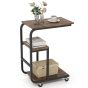 C-shaped End Table Space-saving Couch Table with Open Shelves-Rustic Brown